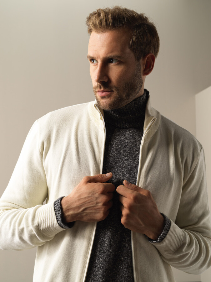Ecru Cotton Textured Regular Fit Sweater - Xint