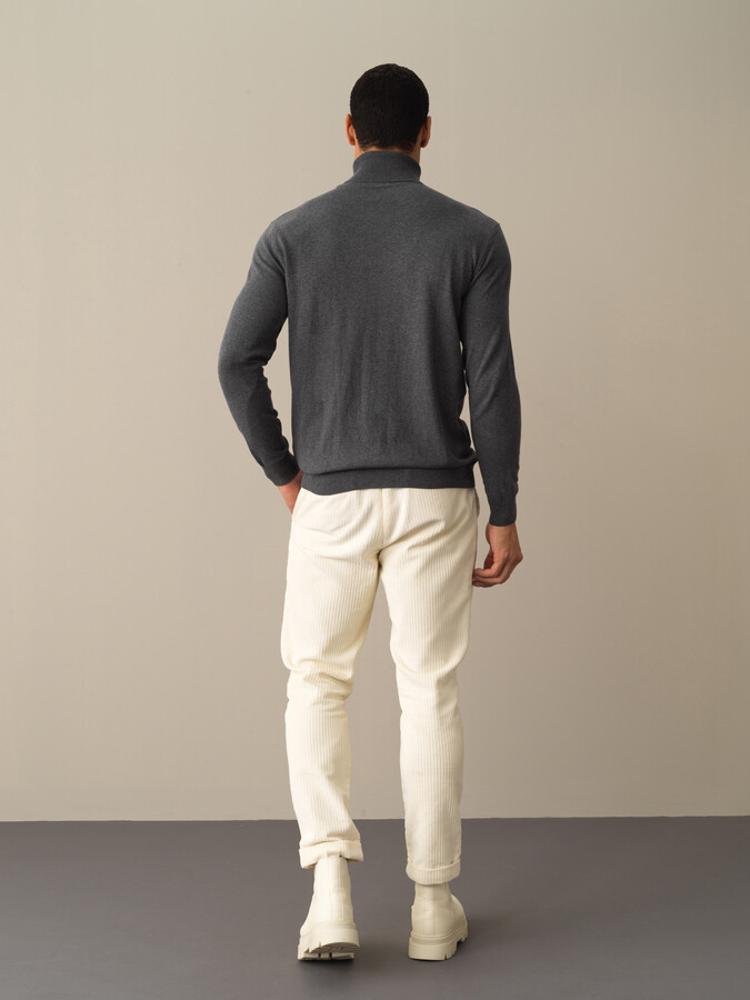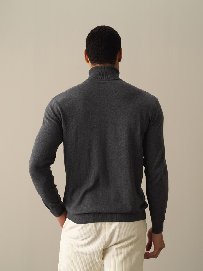 Gray Natural Wool Textured Regular Fit Sweater - Xint