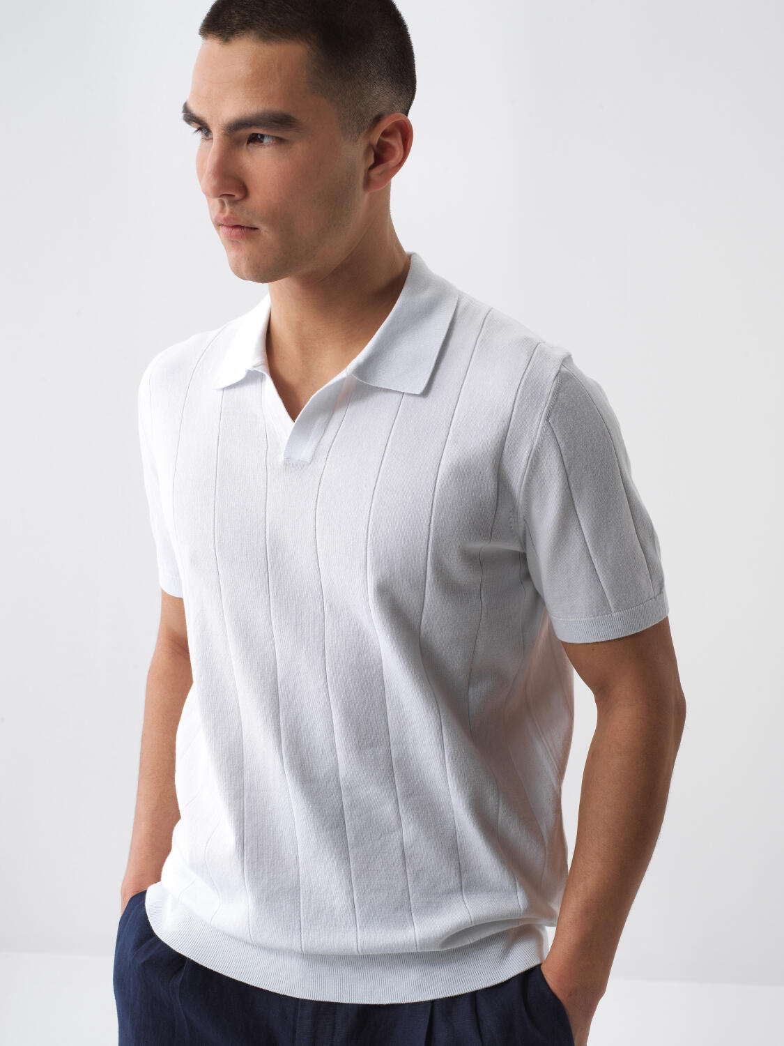Beyaz Pamuk Dokulu Regular Fit Kazak