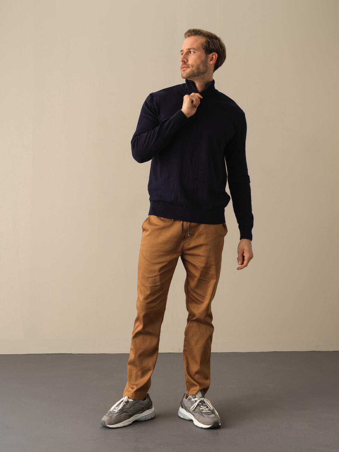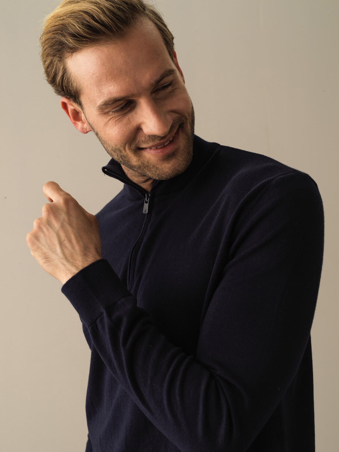 Navy Blue Natural Wool Textured Regular Fit Sweater - Xint