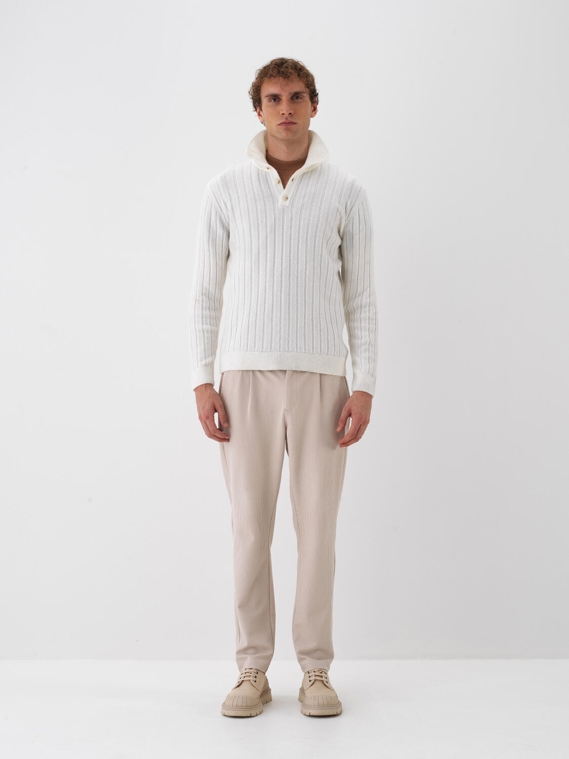 Ecru Soft Texture Regular Fit Sweater