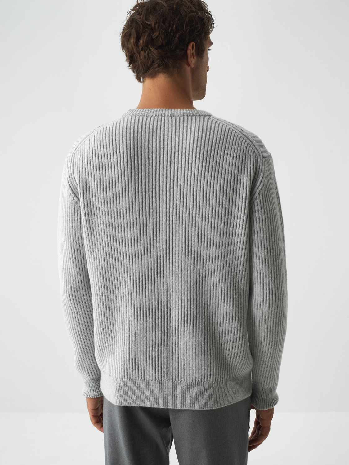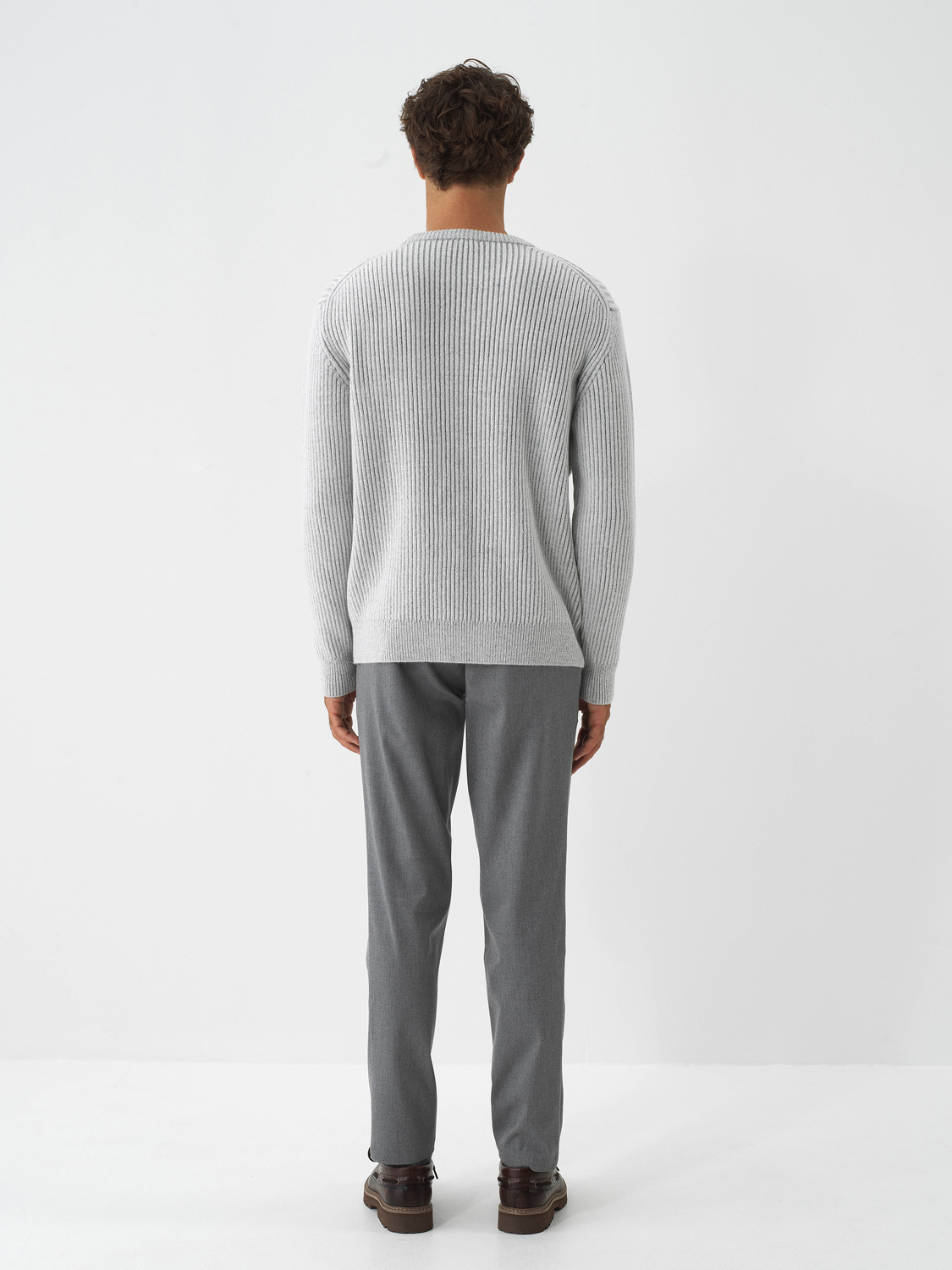 Gri Doğal Yün Dokulu Regular Fit Kazak