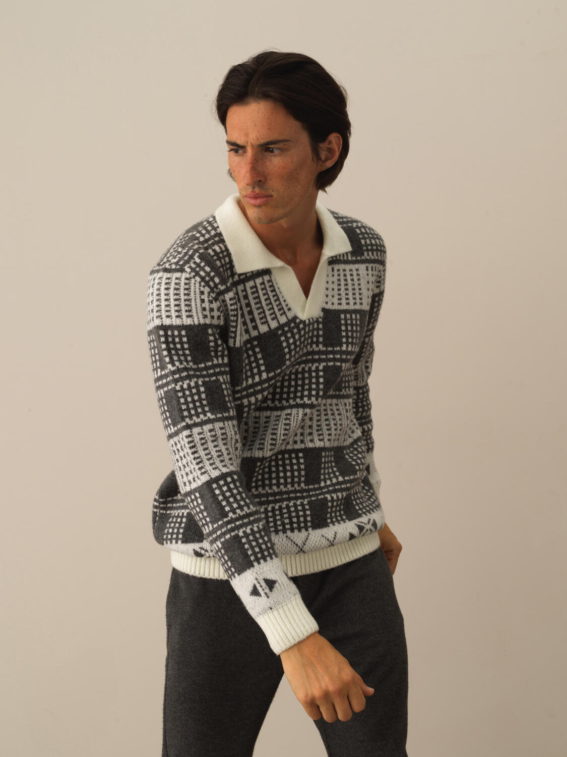 Ekru Pamuk Dokulu Regular Fit Kazak