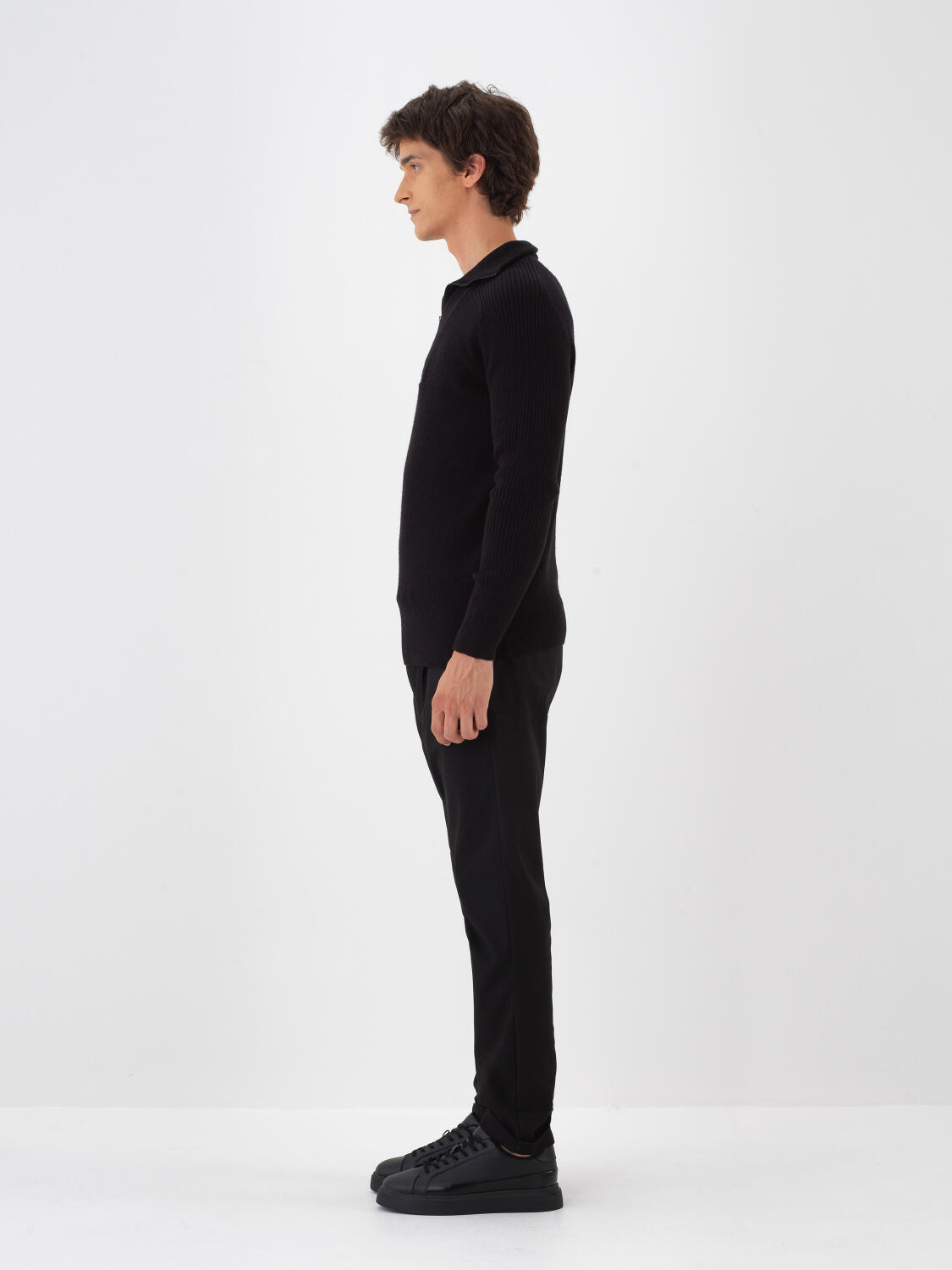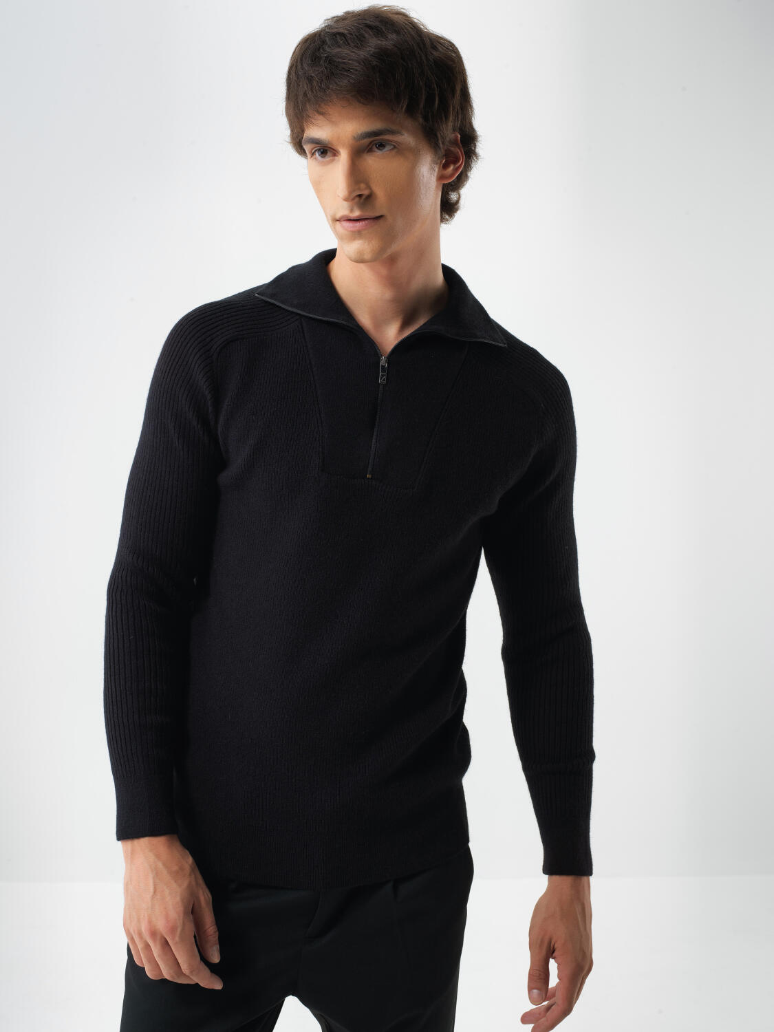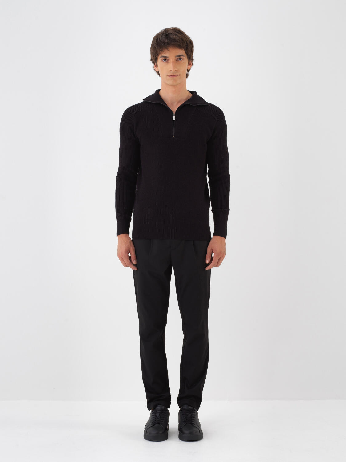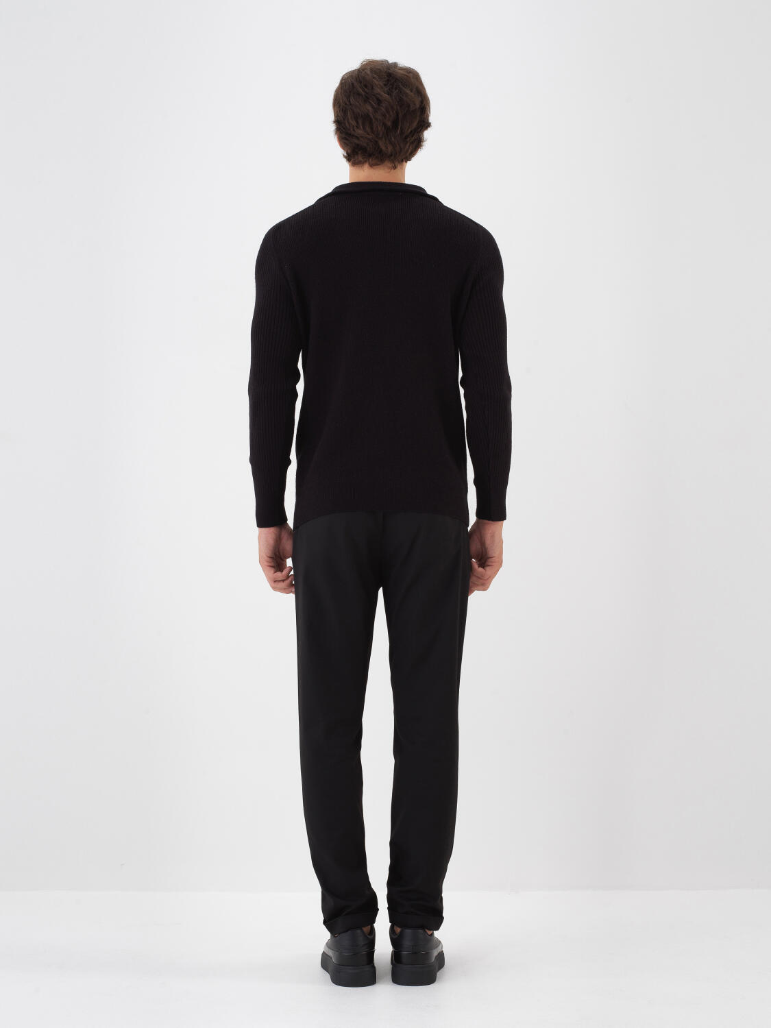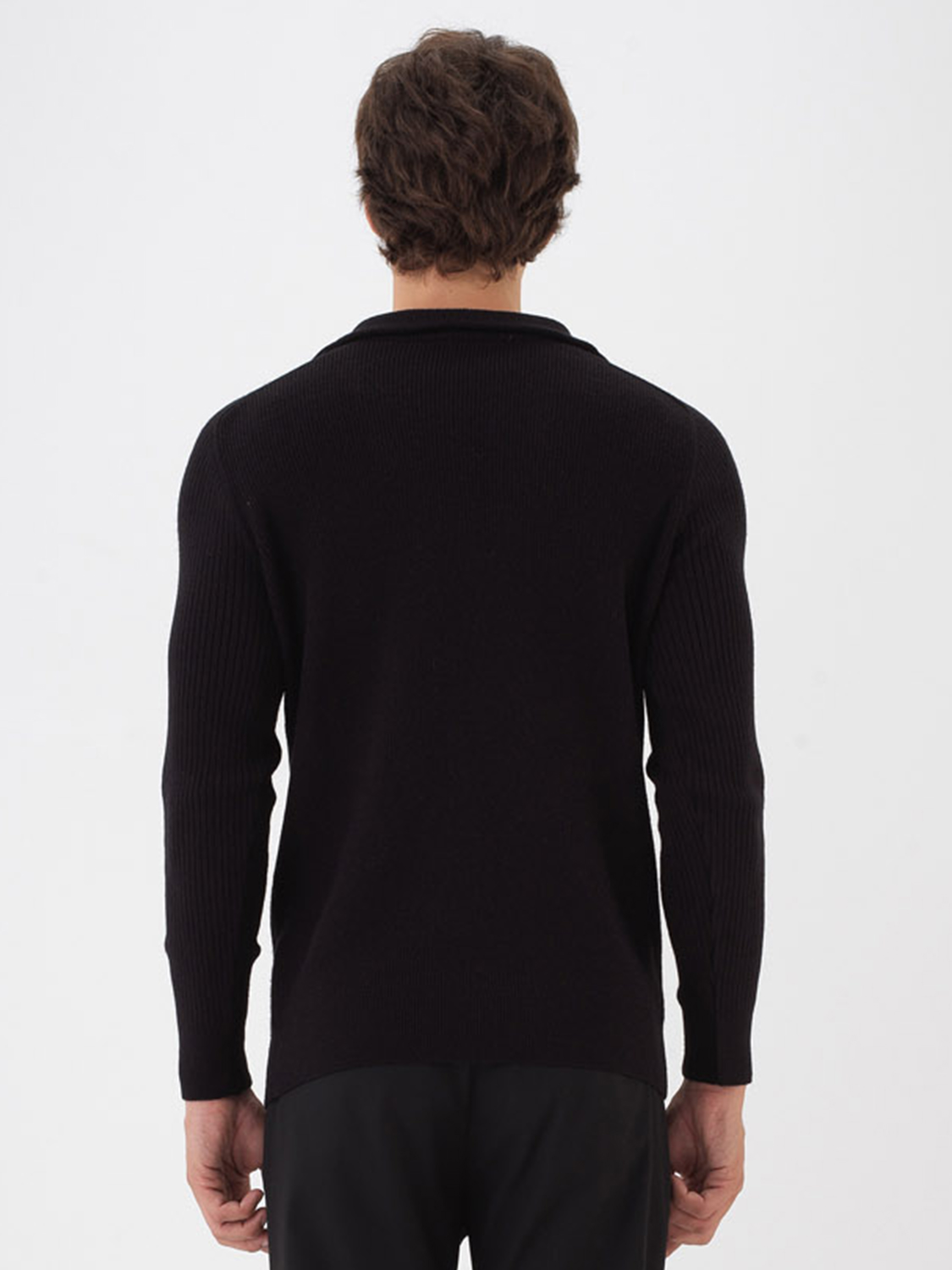 Siyah Doğal Yün Dokulu Regular Fit Kazak