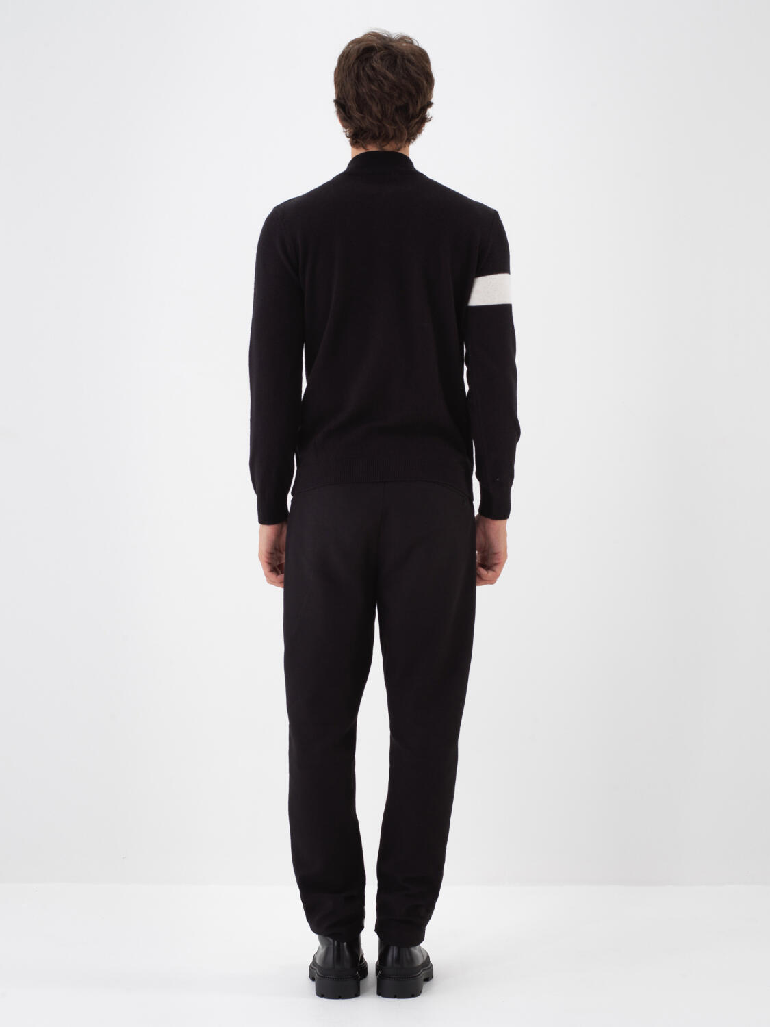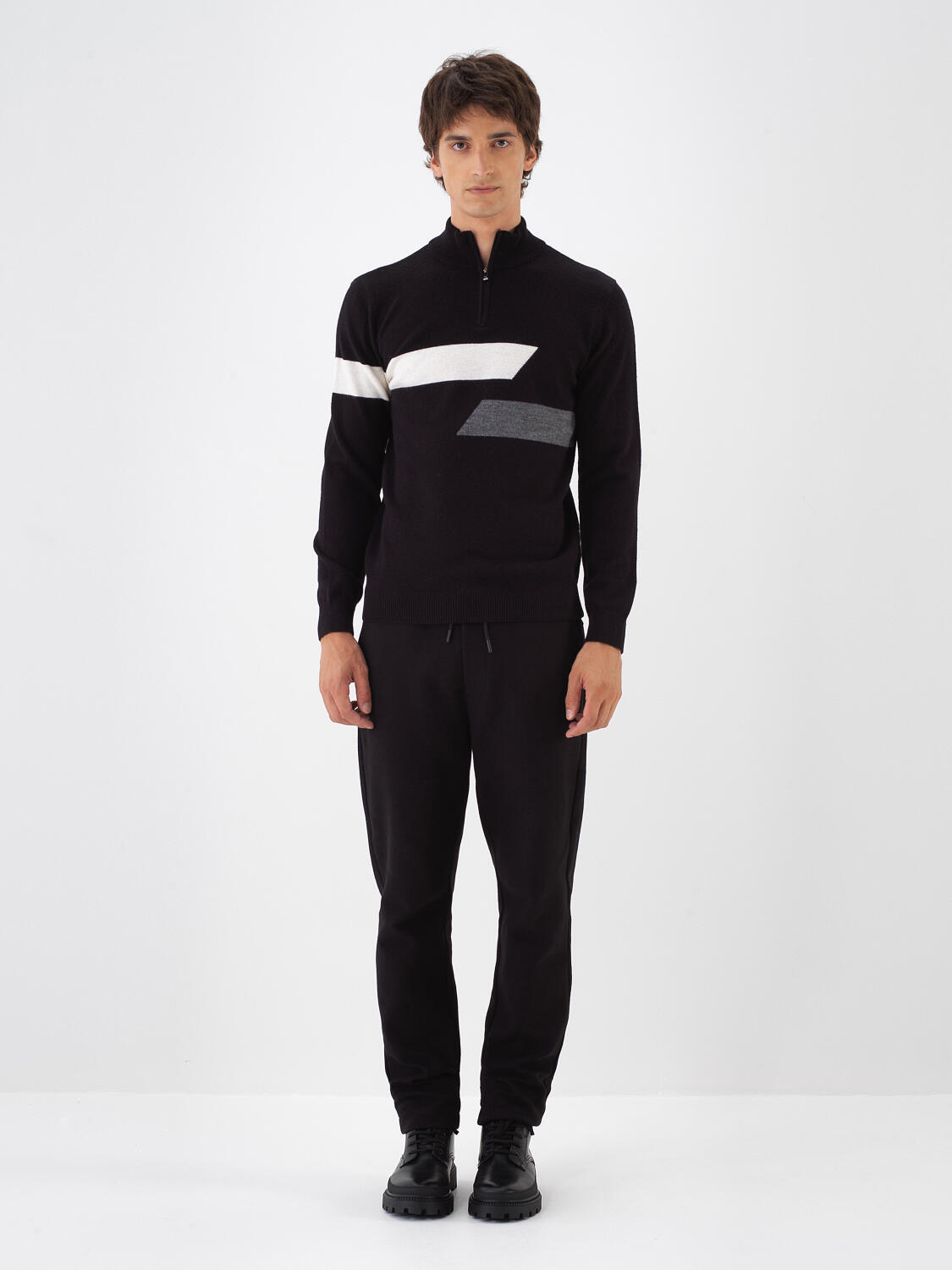 Siyah Doğal Yün Dokulu Regular Fit Kazak