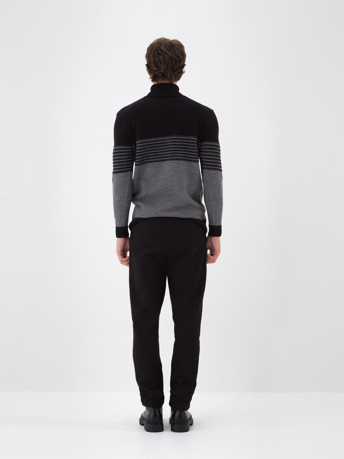 Siyah Doğal Yün Dokulu Regular Fit Kazak
