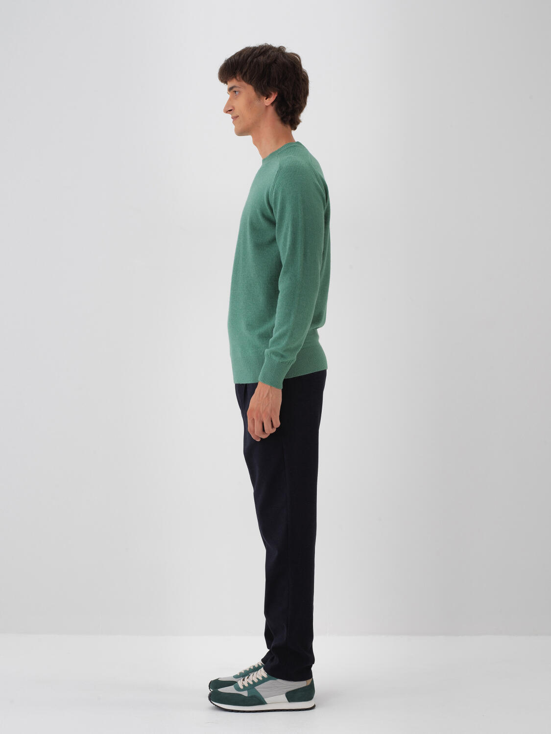 Yeşil Doğal Yün Dokulu Regular Fit Kazak - Xint