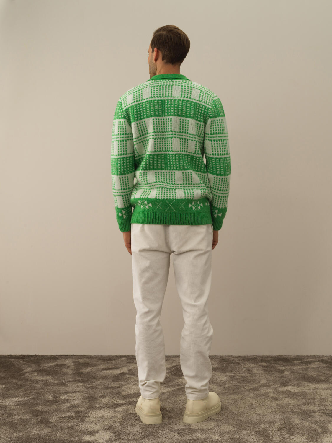 Yeşil Lüks Pamuk Dokulu Regular Fit Kazak