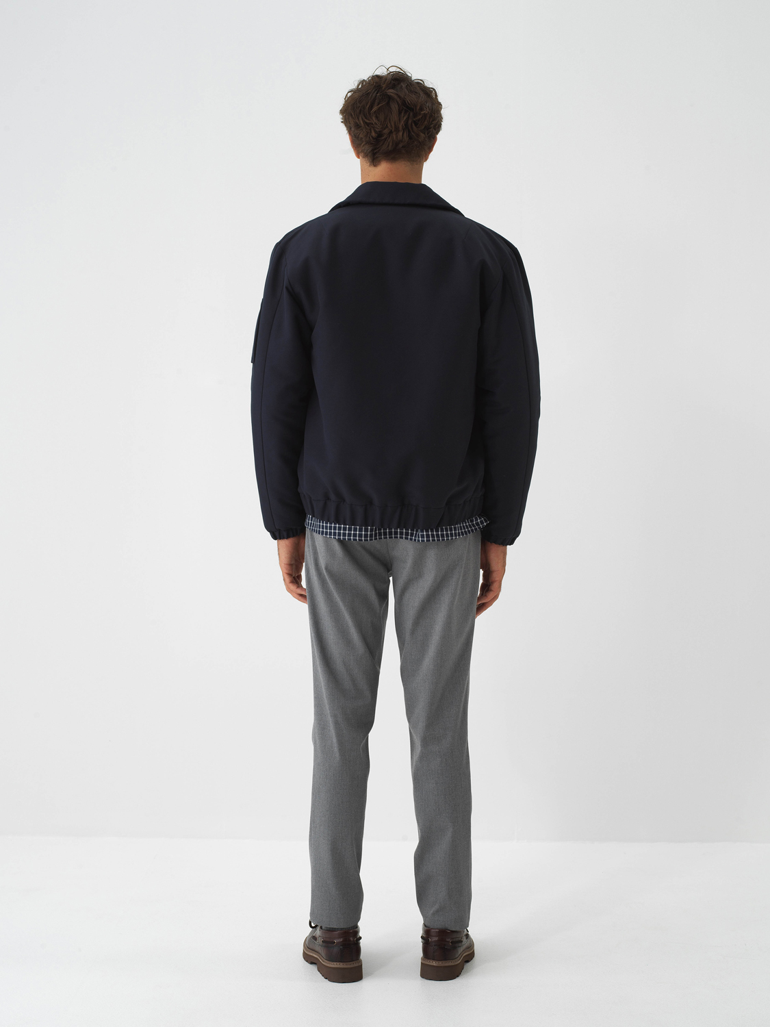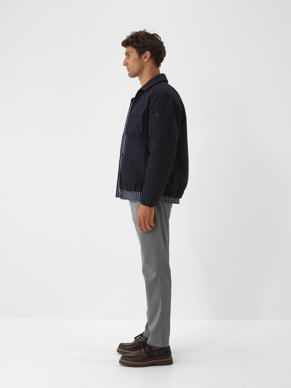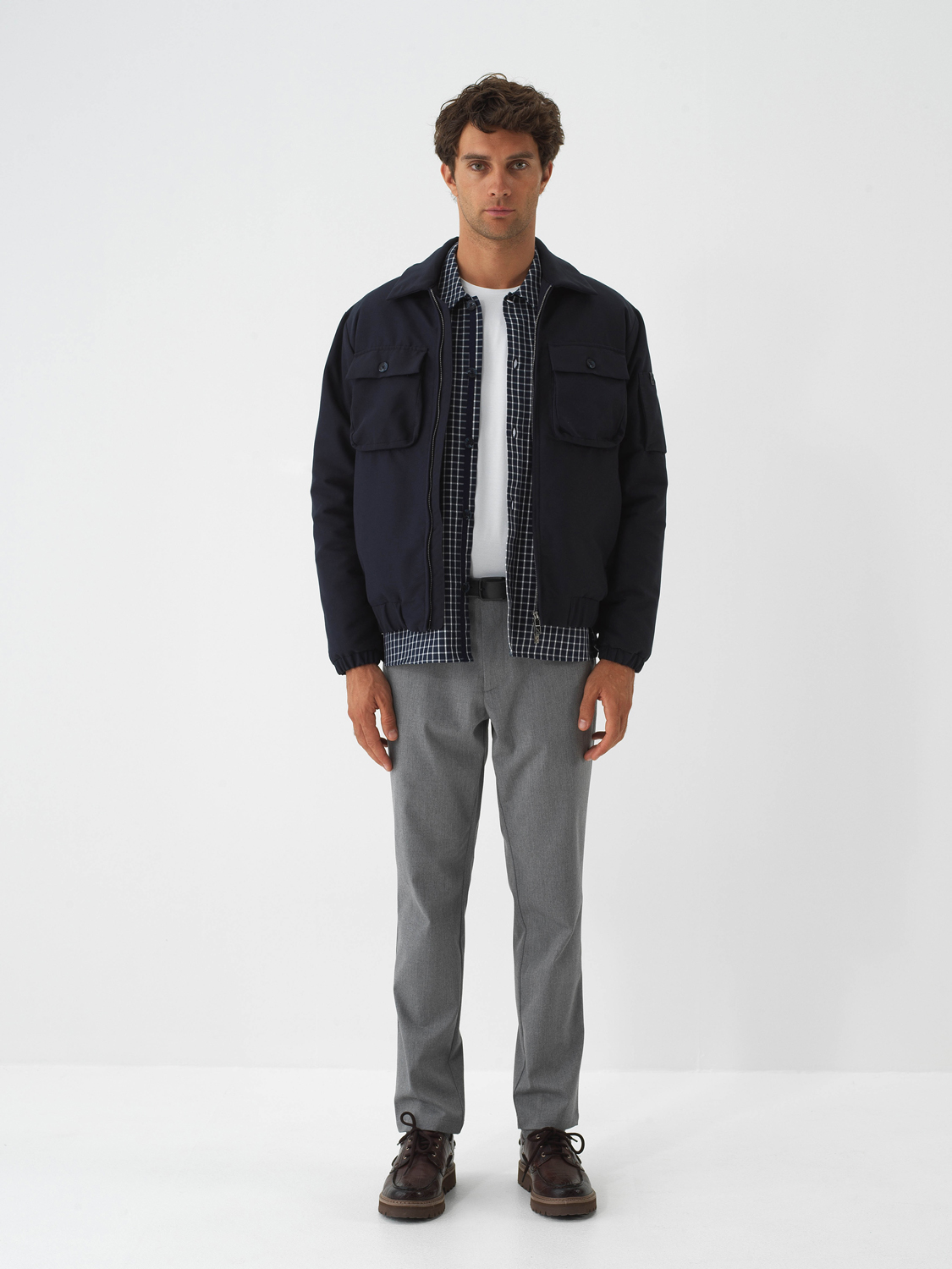 Navy Blue Modern Plaid Regular Fit Shirt Jacket - Xint