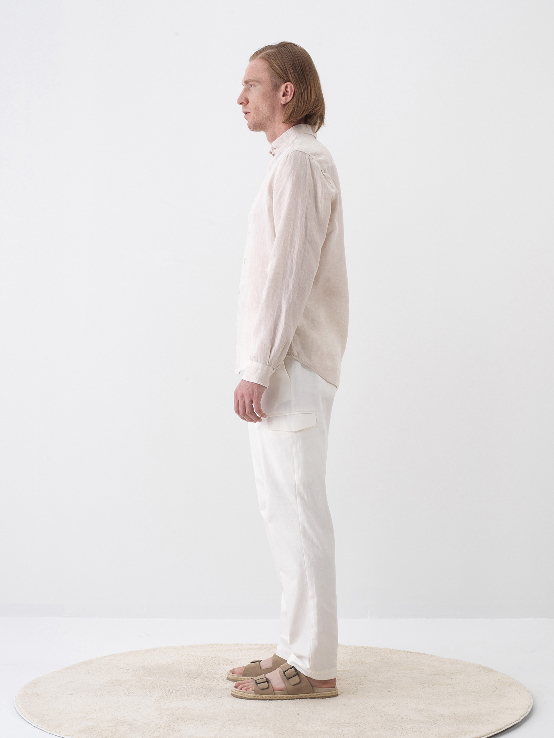 Beyaz Keten Karışımlı Regular Fit Pantolon