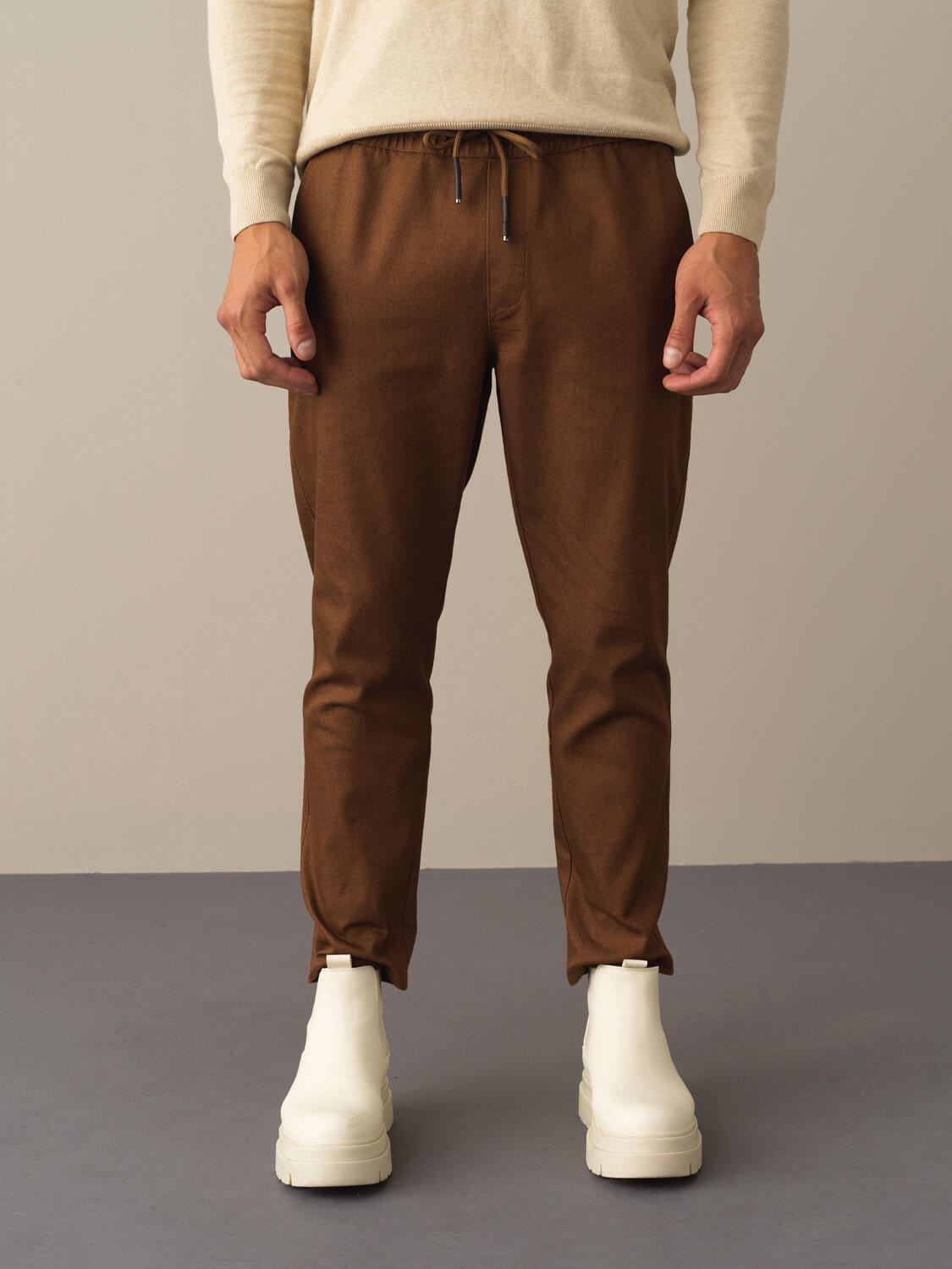 Cotton Elastic Waist Regular Fit Pants