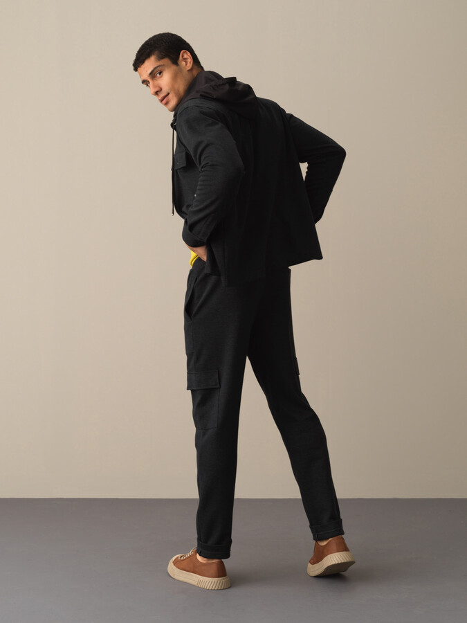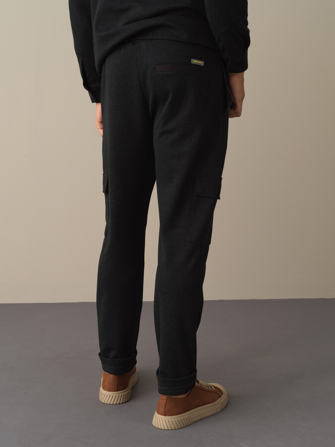 Black Flexible Textured Regular Fit Trousers