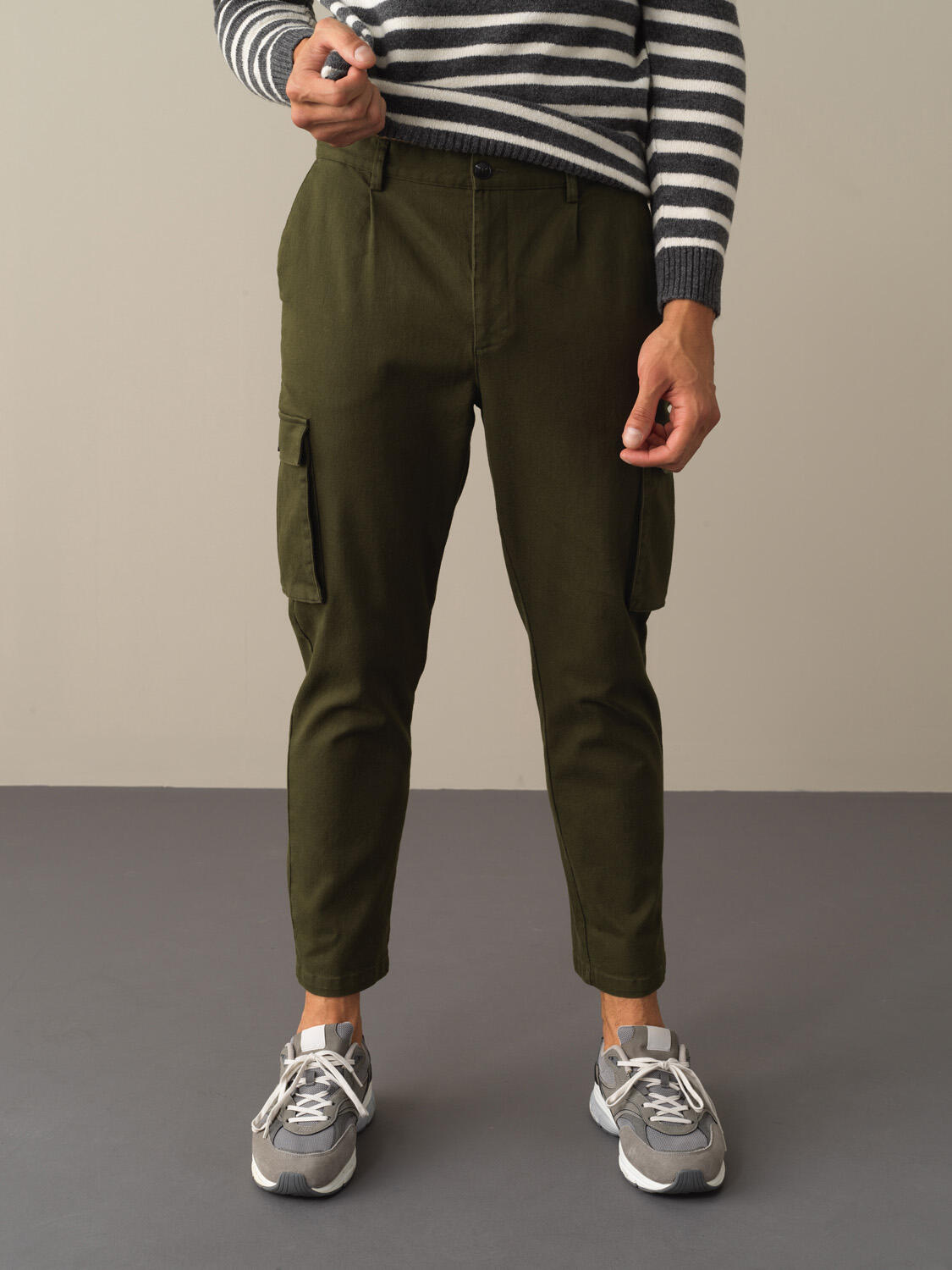 Haki Pamuk Dokulu Kargo Cep Pantolon
