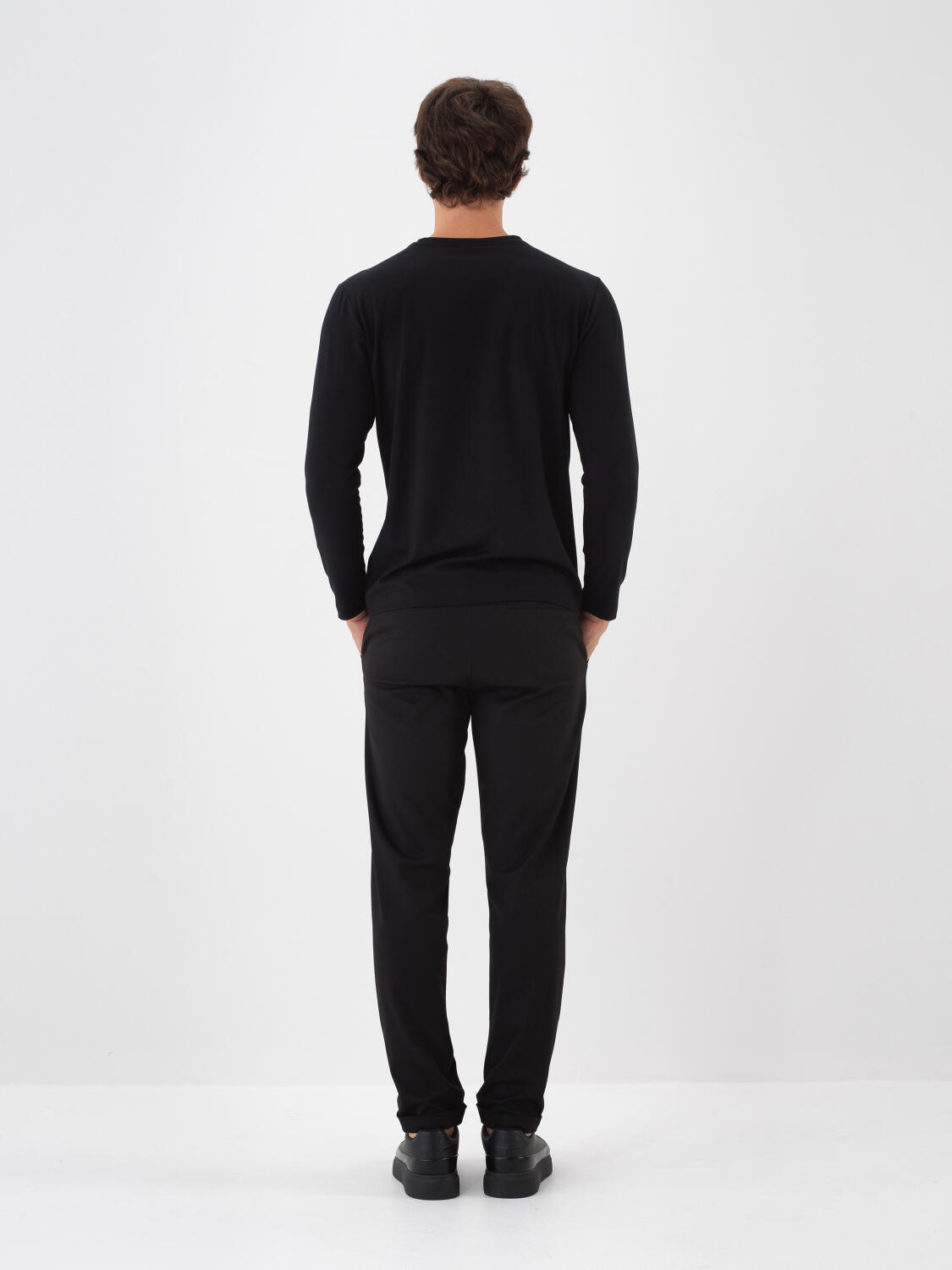 Siyah Pamuk Dokulu Regular Fit Pantolon