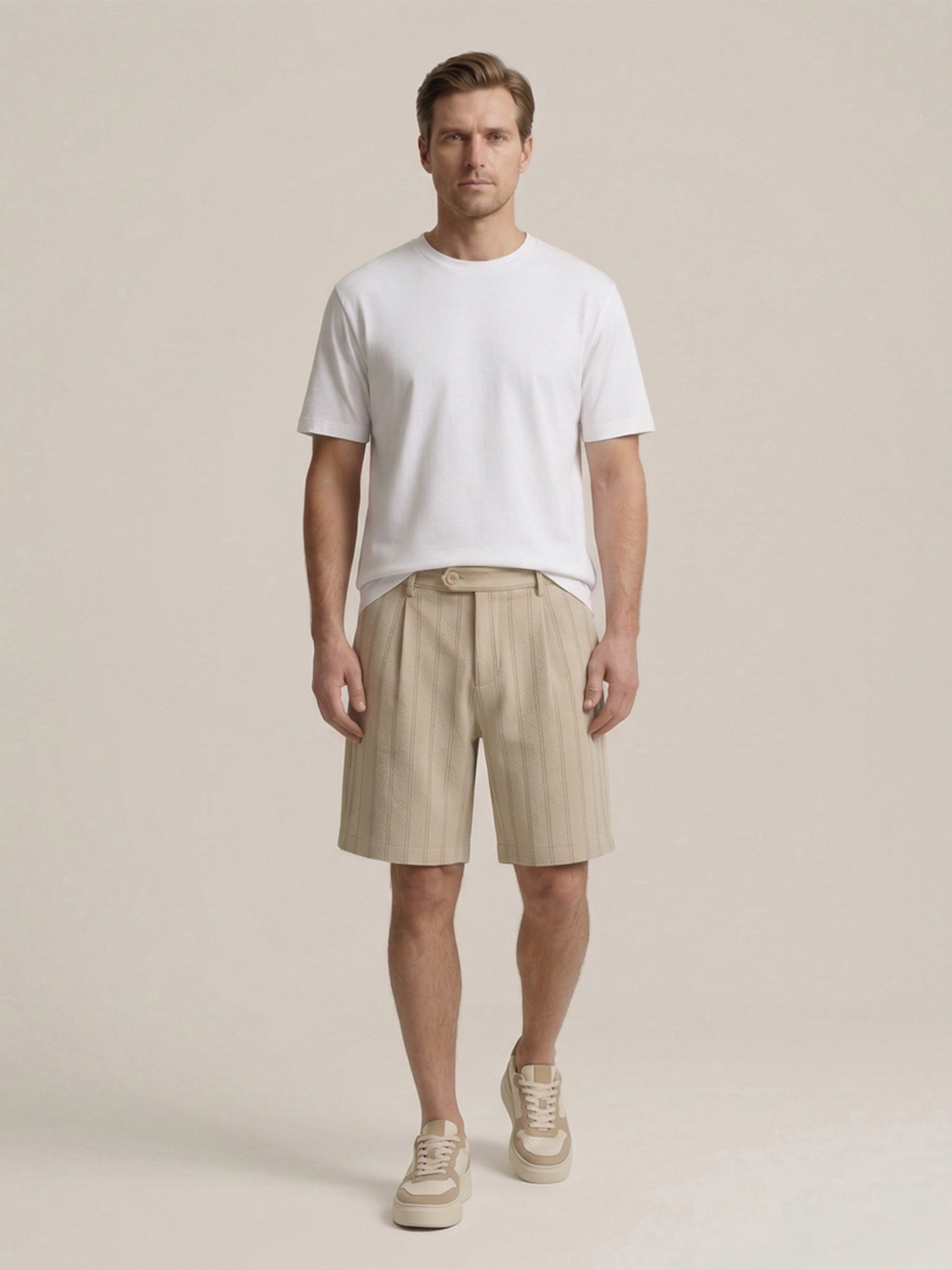Bej Doğal Dökümlü Regular Fit Şort