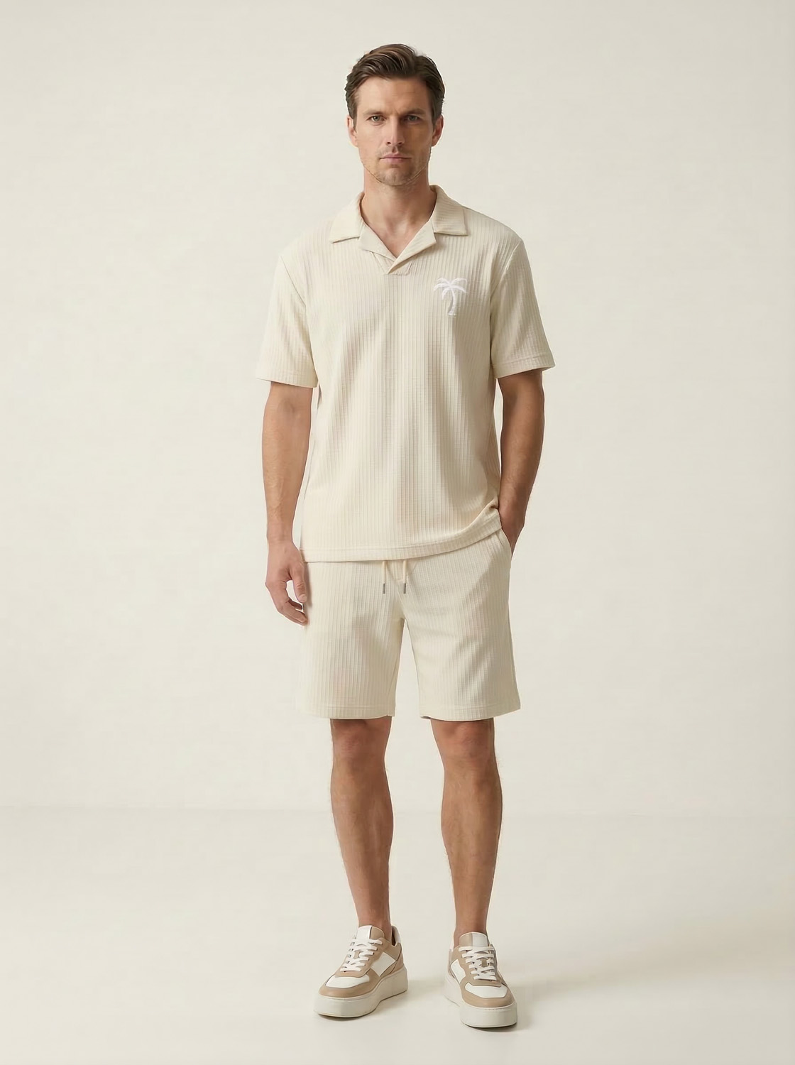 Bej Doğal Dökümlü Regular Fit Şort