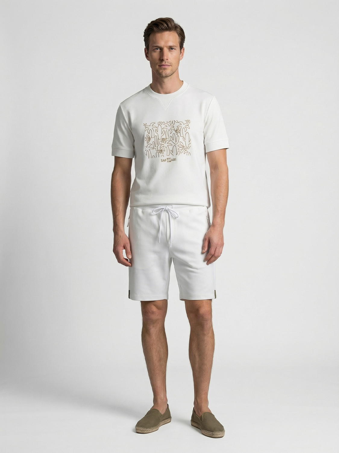 Beyaz Pamuk Dokulu Regular Fit Şort
