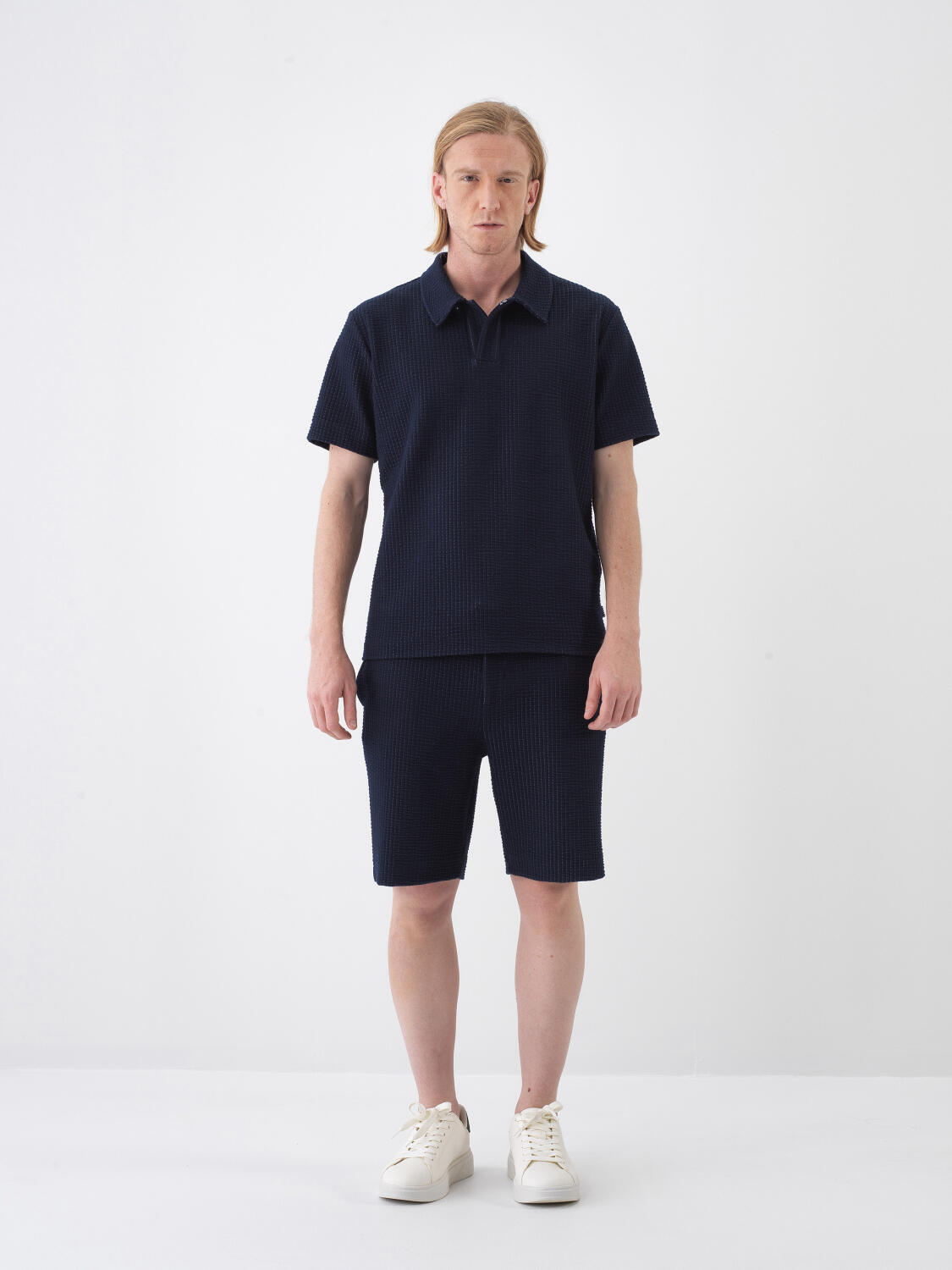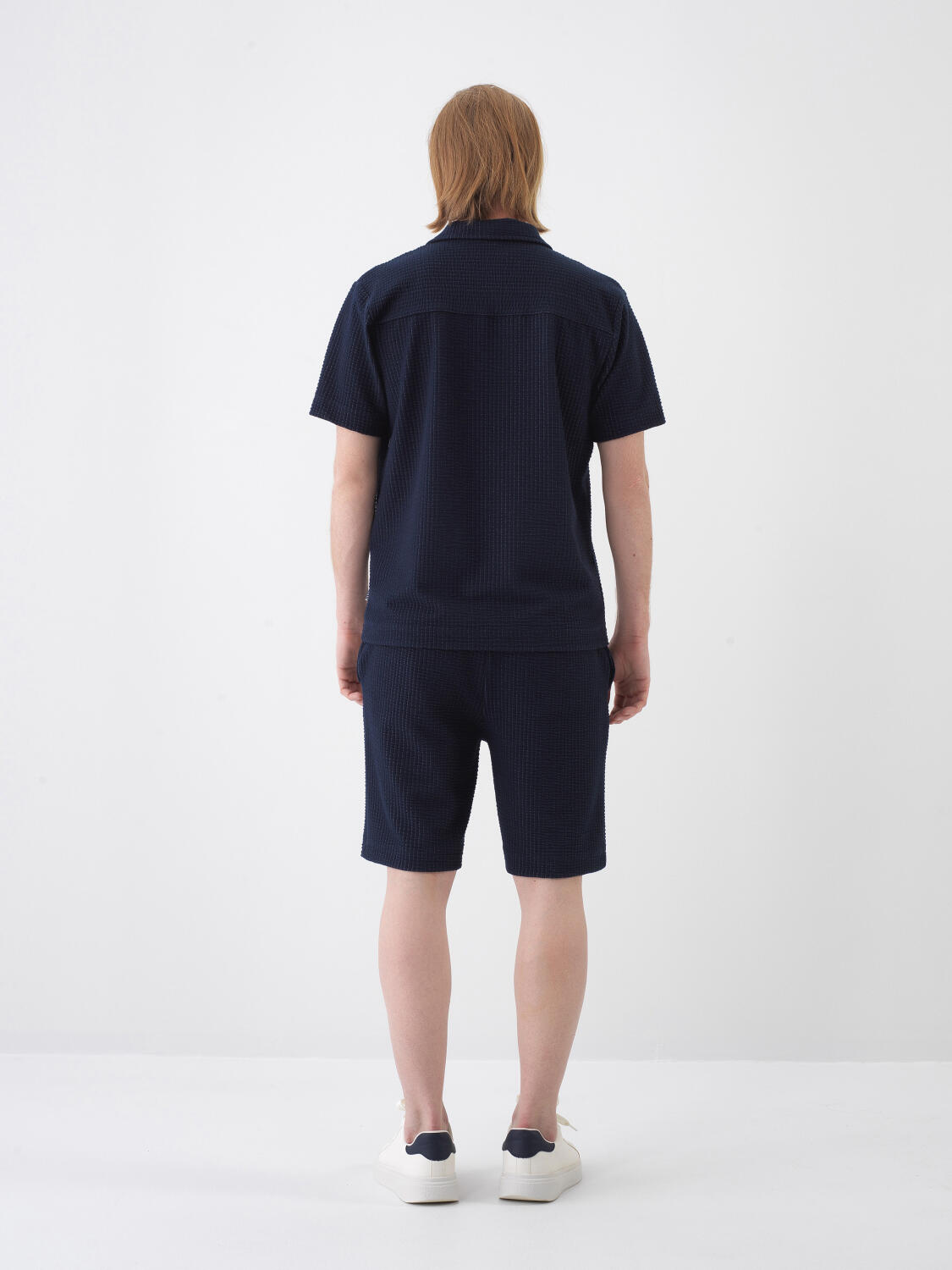 Lacivert Pamuk Dokulu Regular Fit Şort