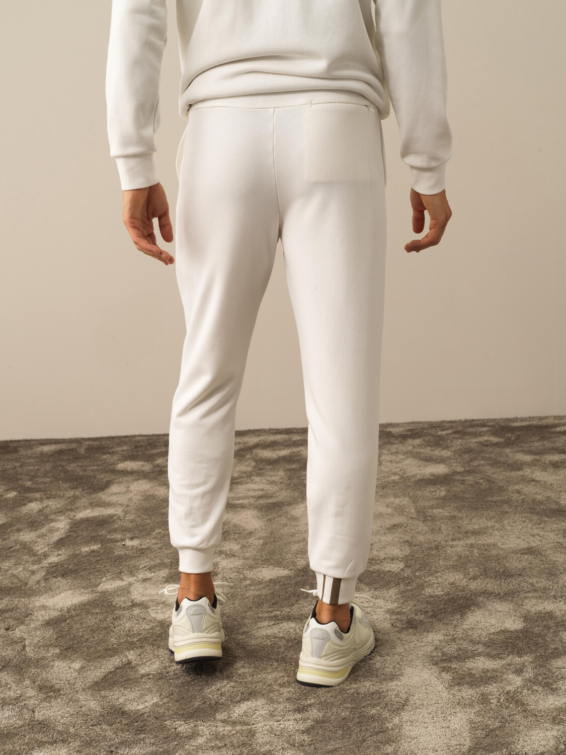 Ecru Cotton Textured Slim Fit Sweat Trousers - Xint