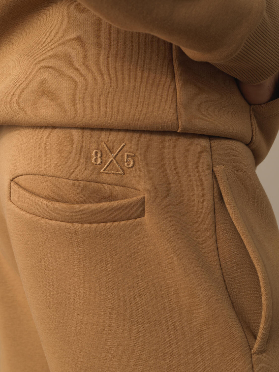 Beige Luxury Textured Soft Velvet Slim Fit Sweat Trousers - Xint
