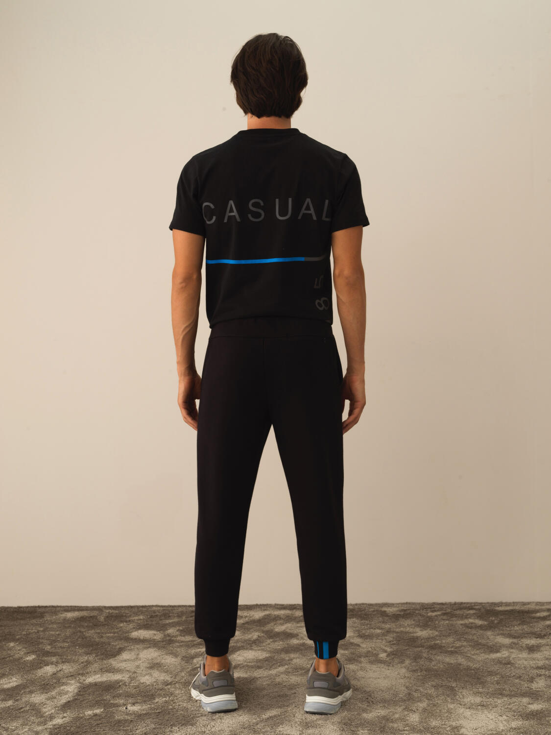 Black Cotton Textured Regular Fit Sweat Pants - Xint