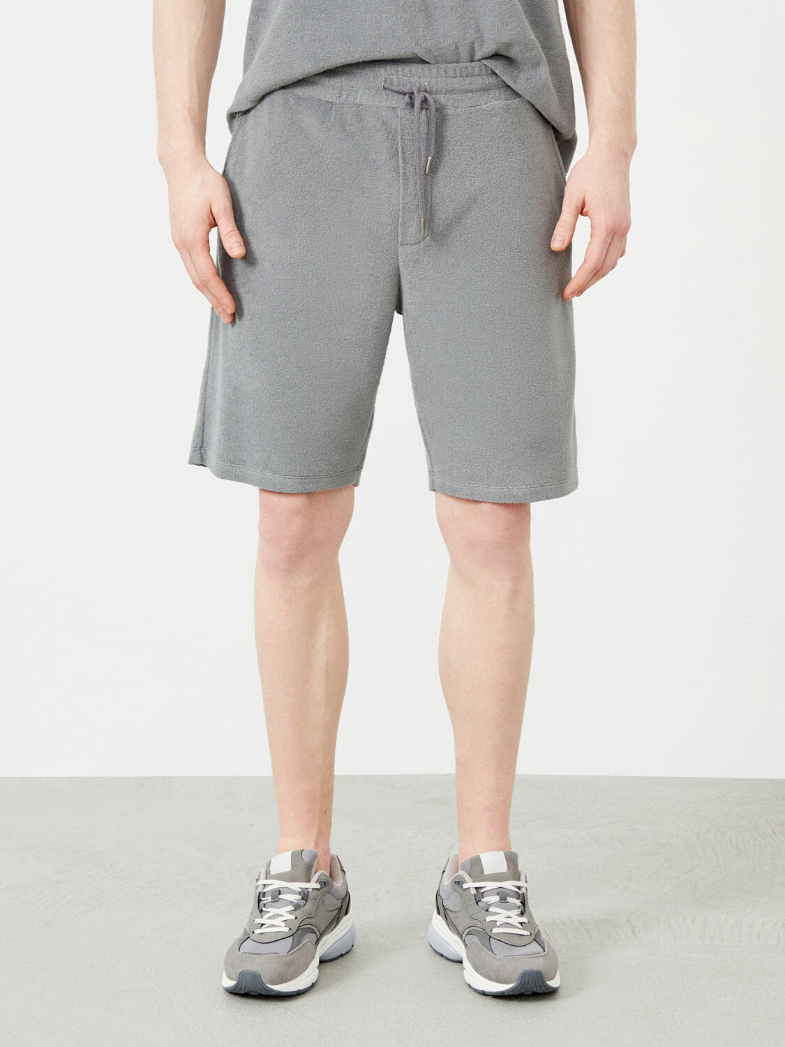 Gri Regular Fit Pamuklu Havlu Sweat Şort