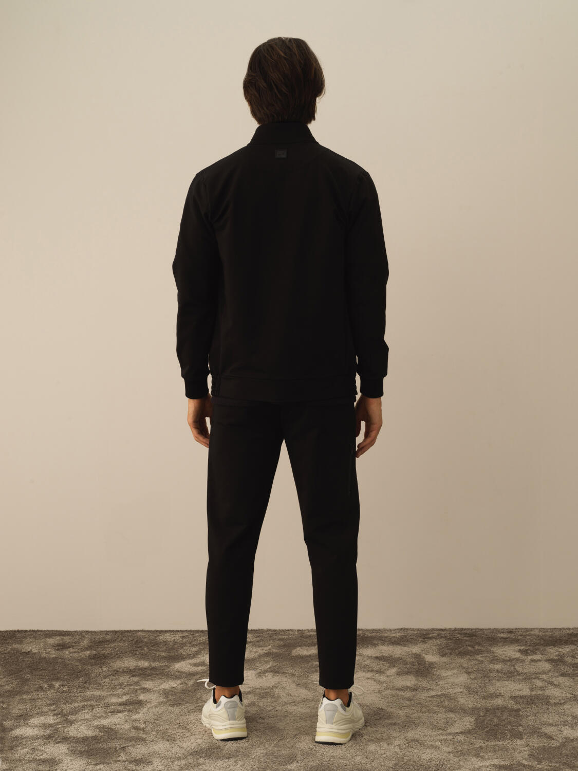 Siyah Pamuk Dokulu Slim Fit Sweatmont
