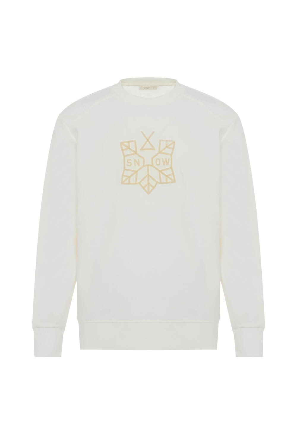Ekru Pamuk Dokulu Regular Fit Sweatshirt - Xint