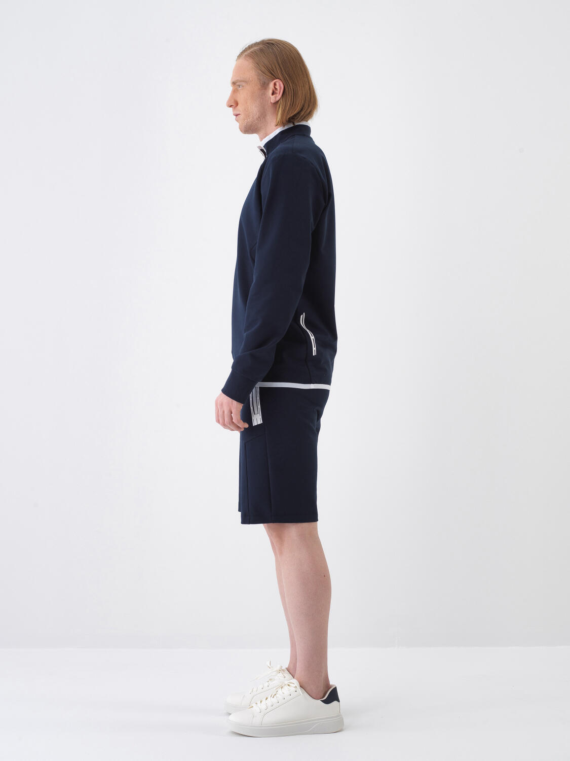 Lacivert Pamuk Dokulu Slim Fit Sweatshirt