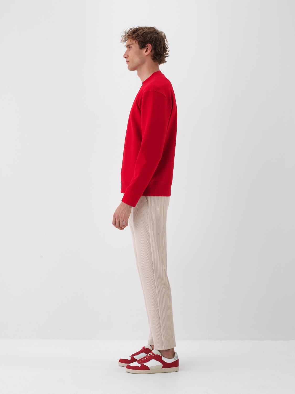 Kırmızı Pamuk Dokulu Regular Fit Sweatshirt