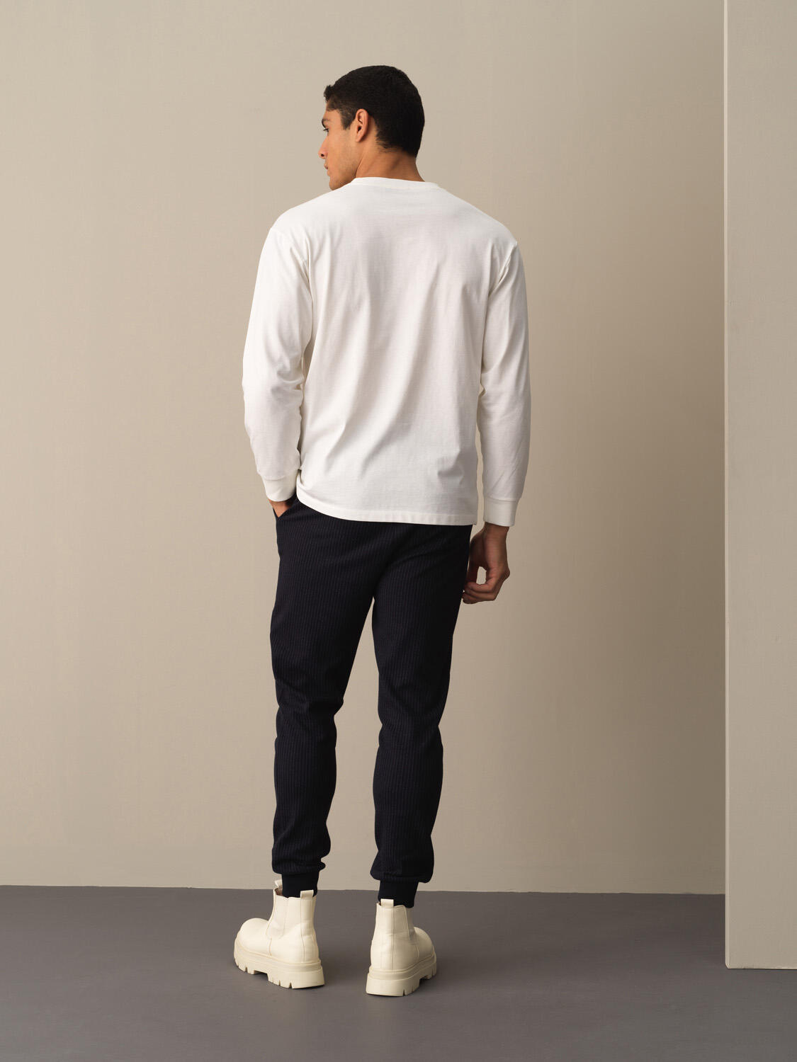 White Modal Textured Slim Fit Long Sleeve T-Shirt