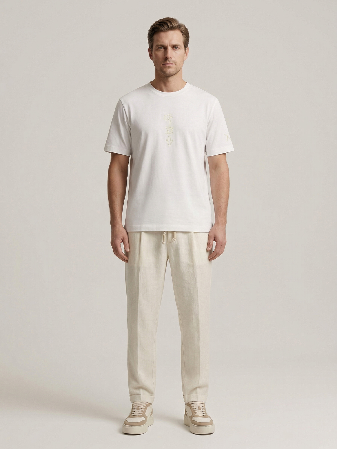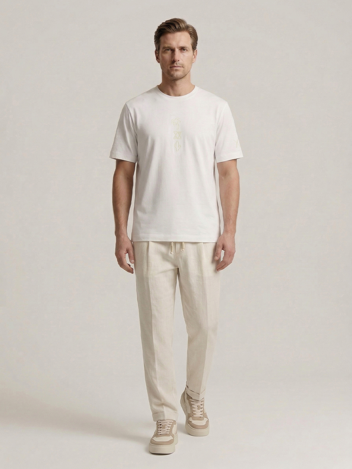 Beyaz Pamuk Dokulu Regular Fit Tişört