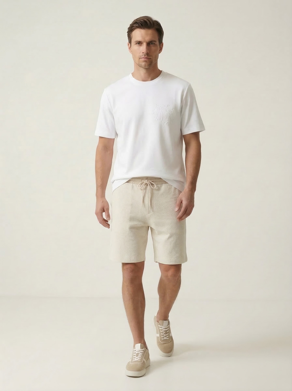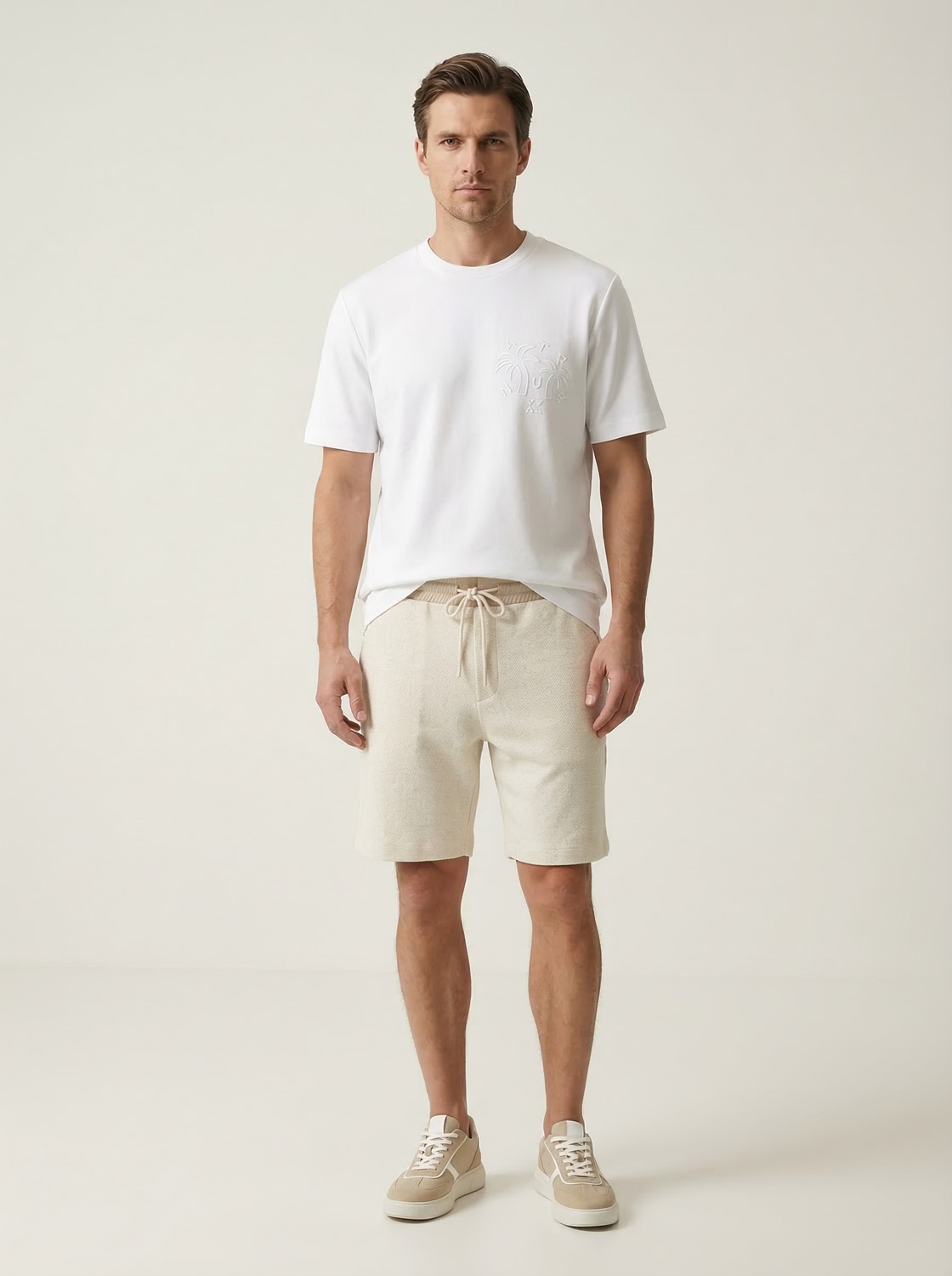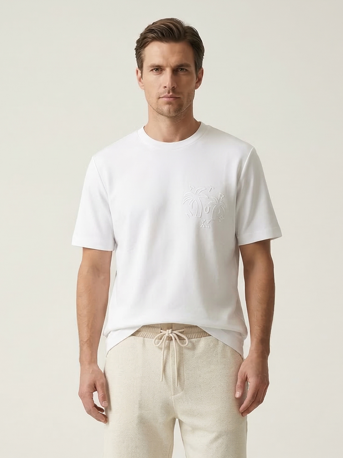 Beyaz Pamuk Dokulu Regular Fit Tişört