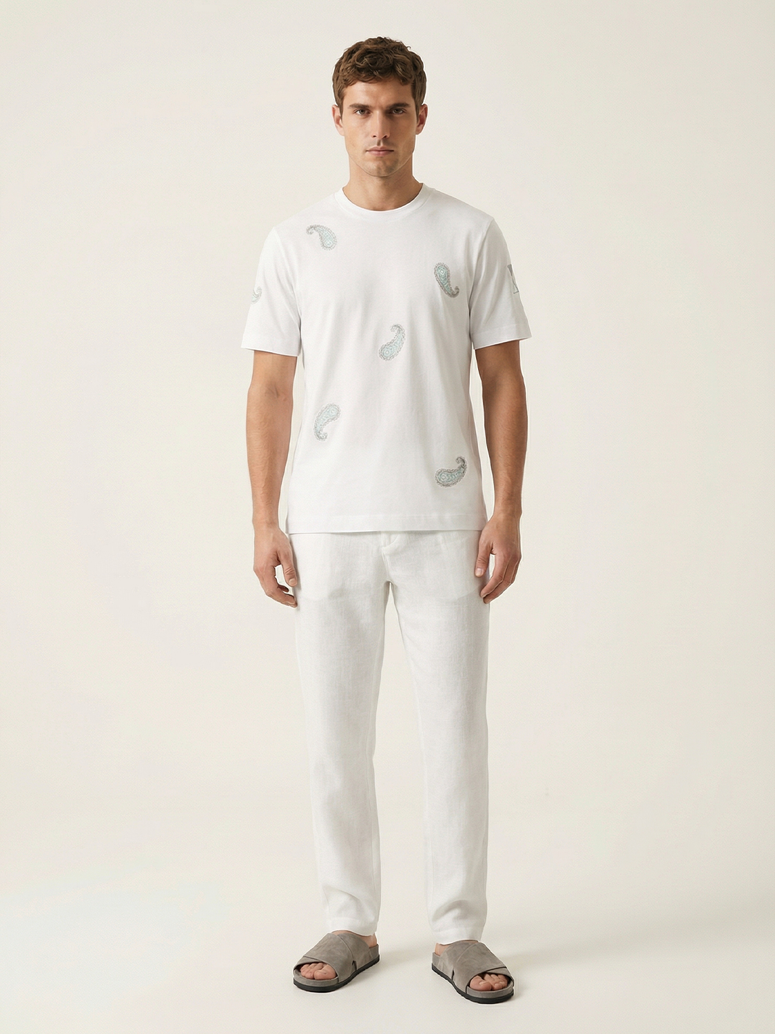 Beyaz Pamuk Dokulu Regular Fit Tişört