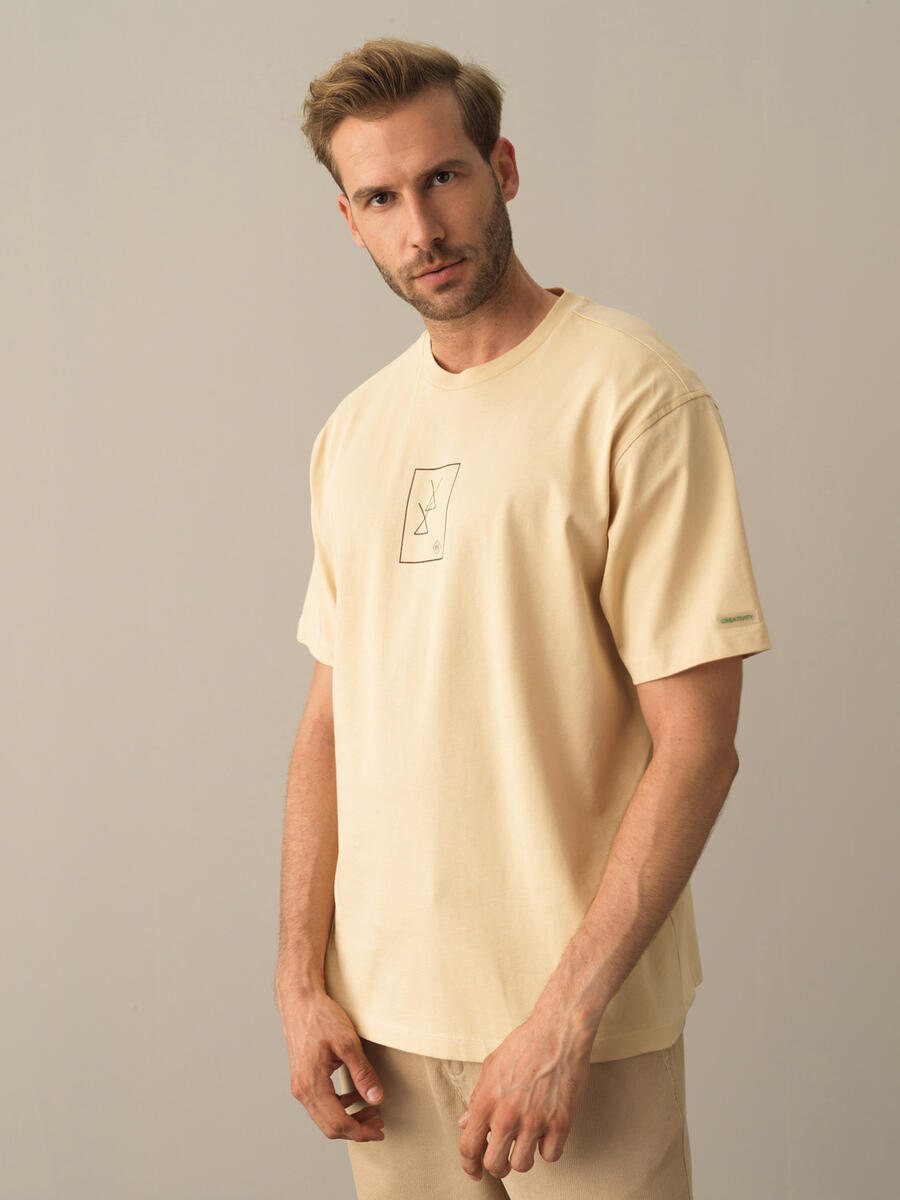 Ecru Flexible Textured Oversize T-Shirt - Xint