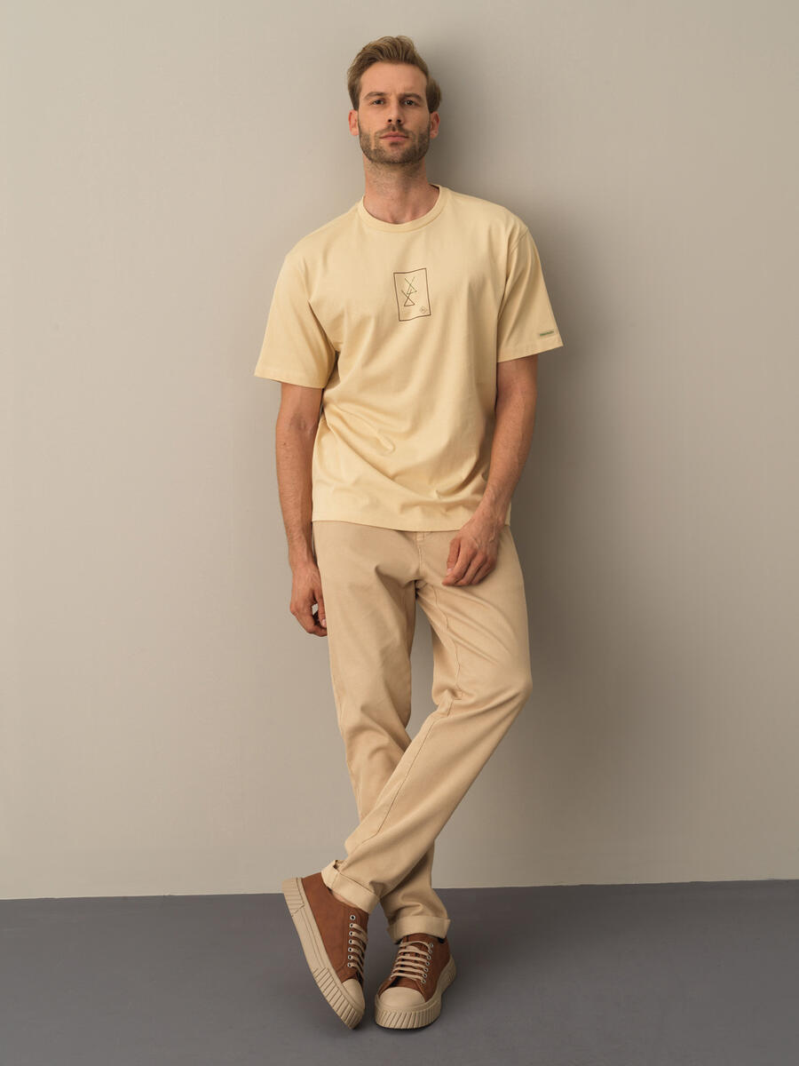 Ecru Cotton Textured Regular Fit T-Shirt - Xint