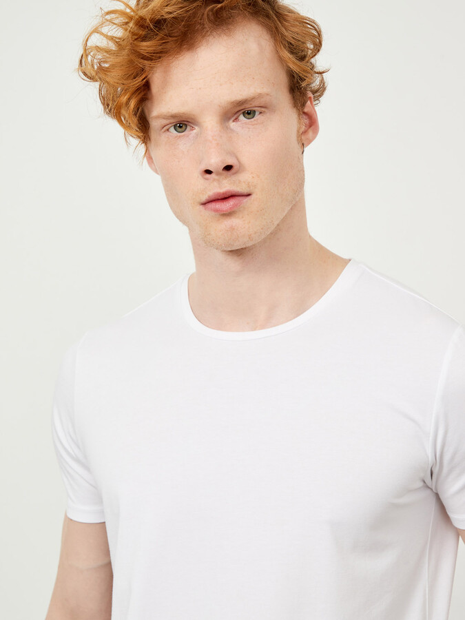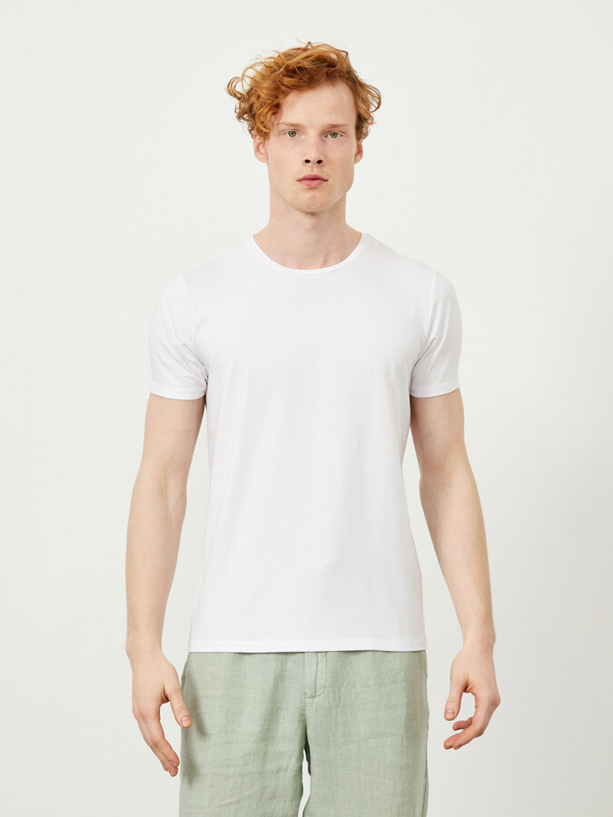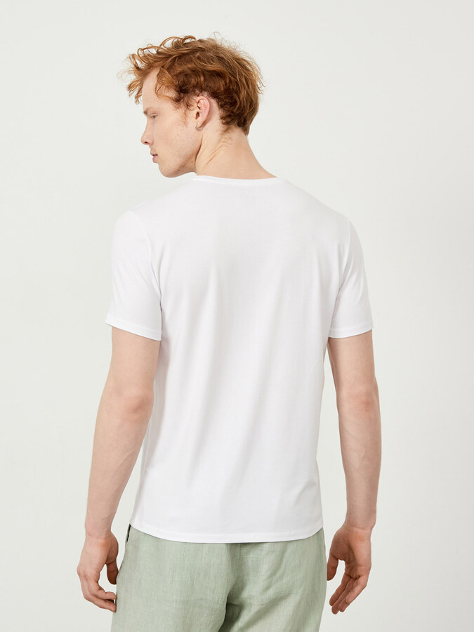 White Luxury Mercerized Textured Regular Fit T-Shirt - Xint