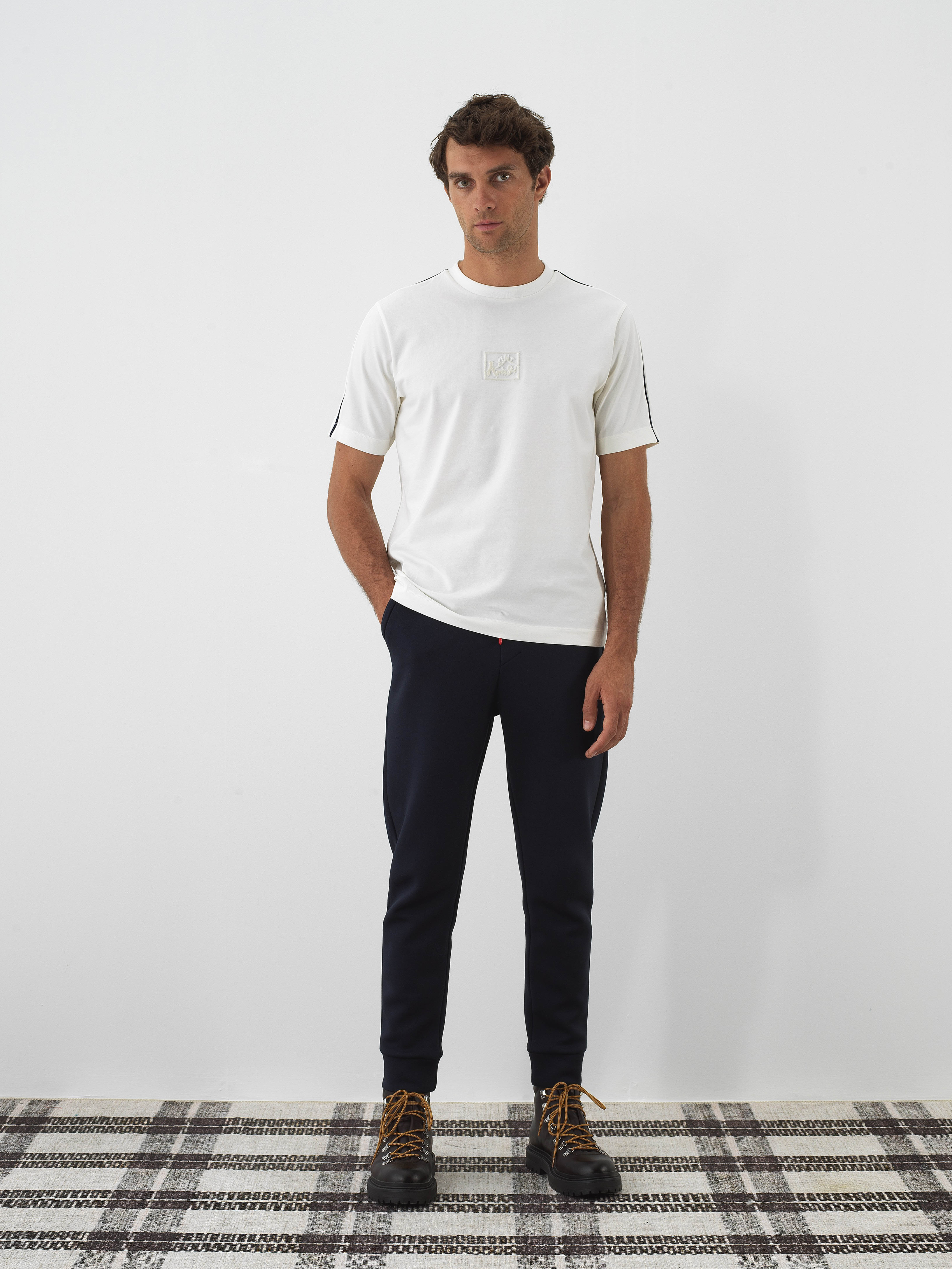 Beyaz Lüks Merserize Dokulu Regular Fit Tişört - Xint