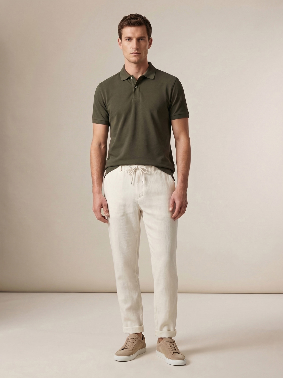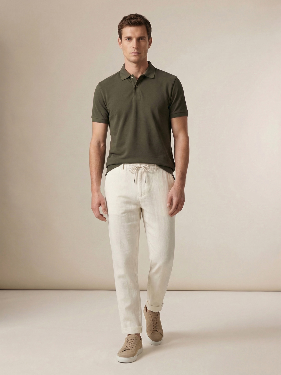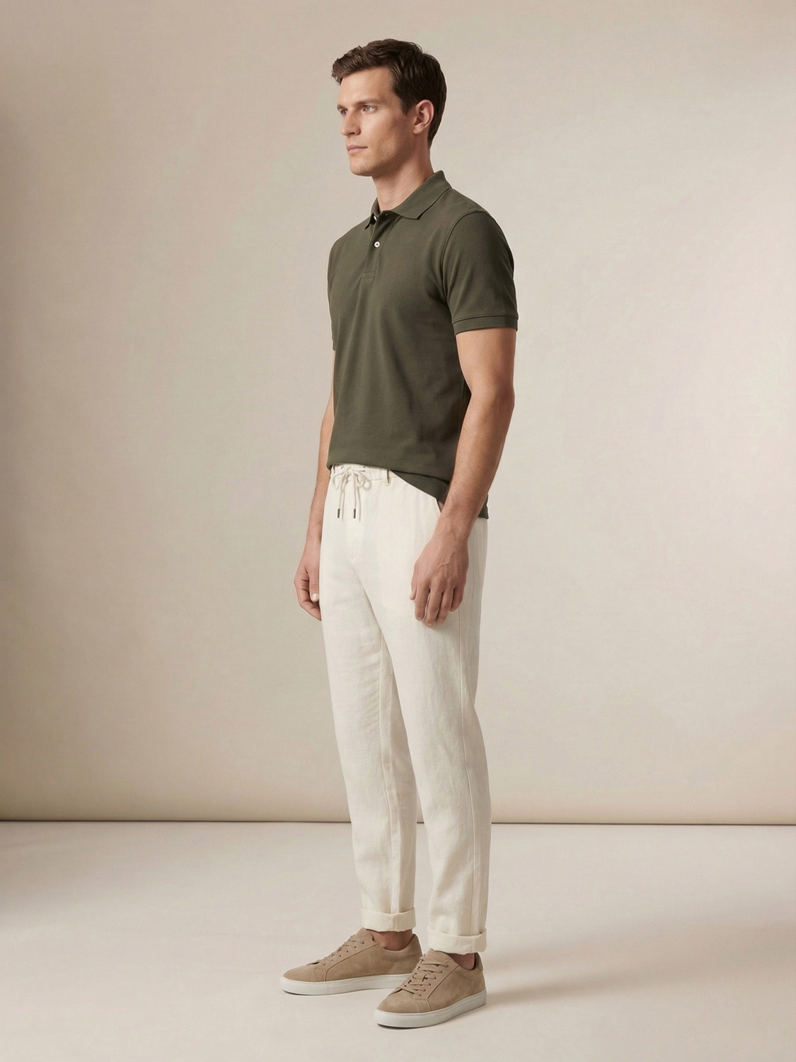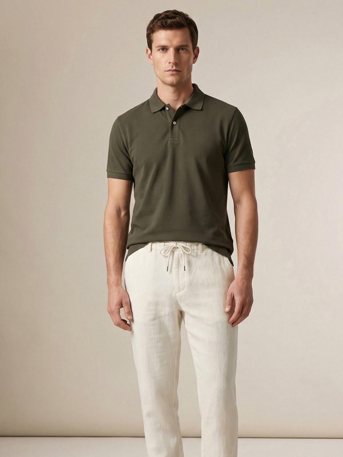 Haki Pamuk Dokulu Regular Fit Tişört