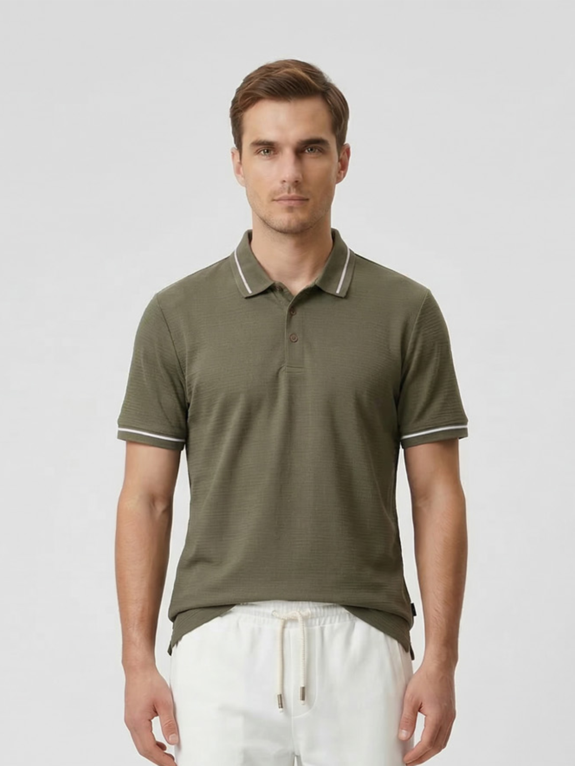 Haki Pamuk Dokulu Regular Fit Tişört