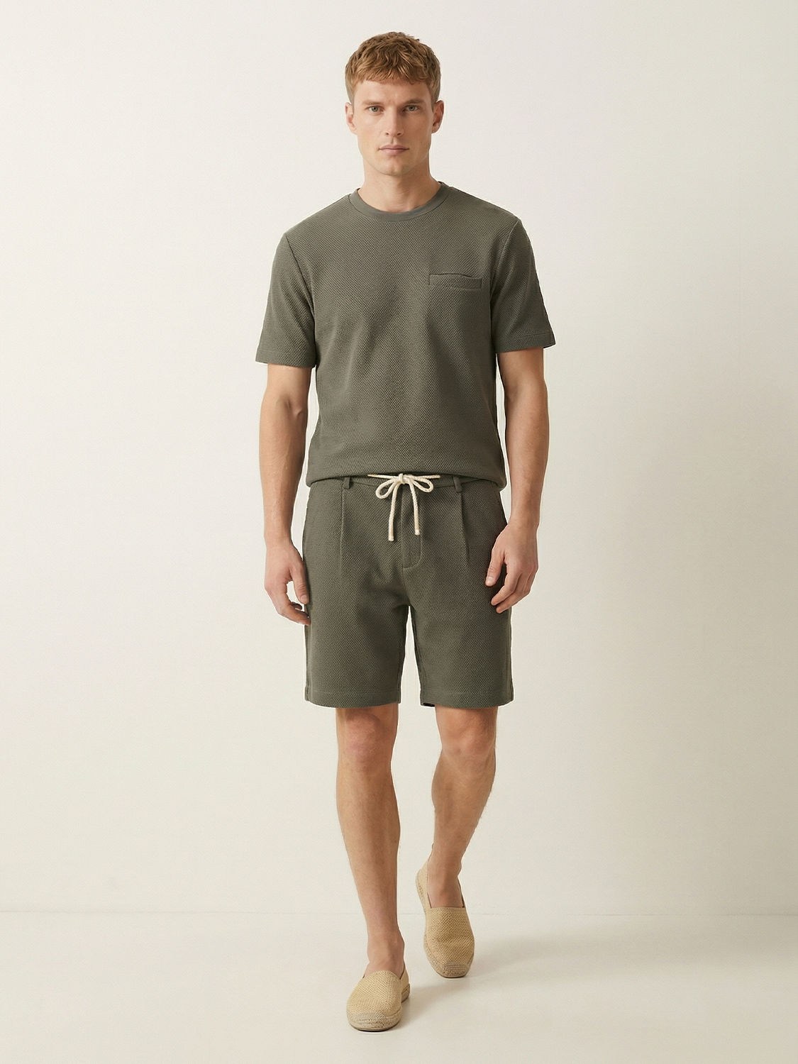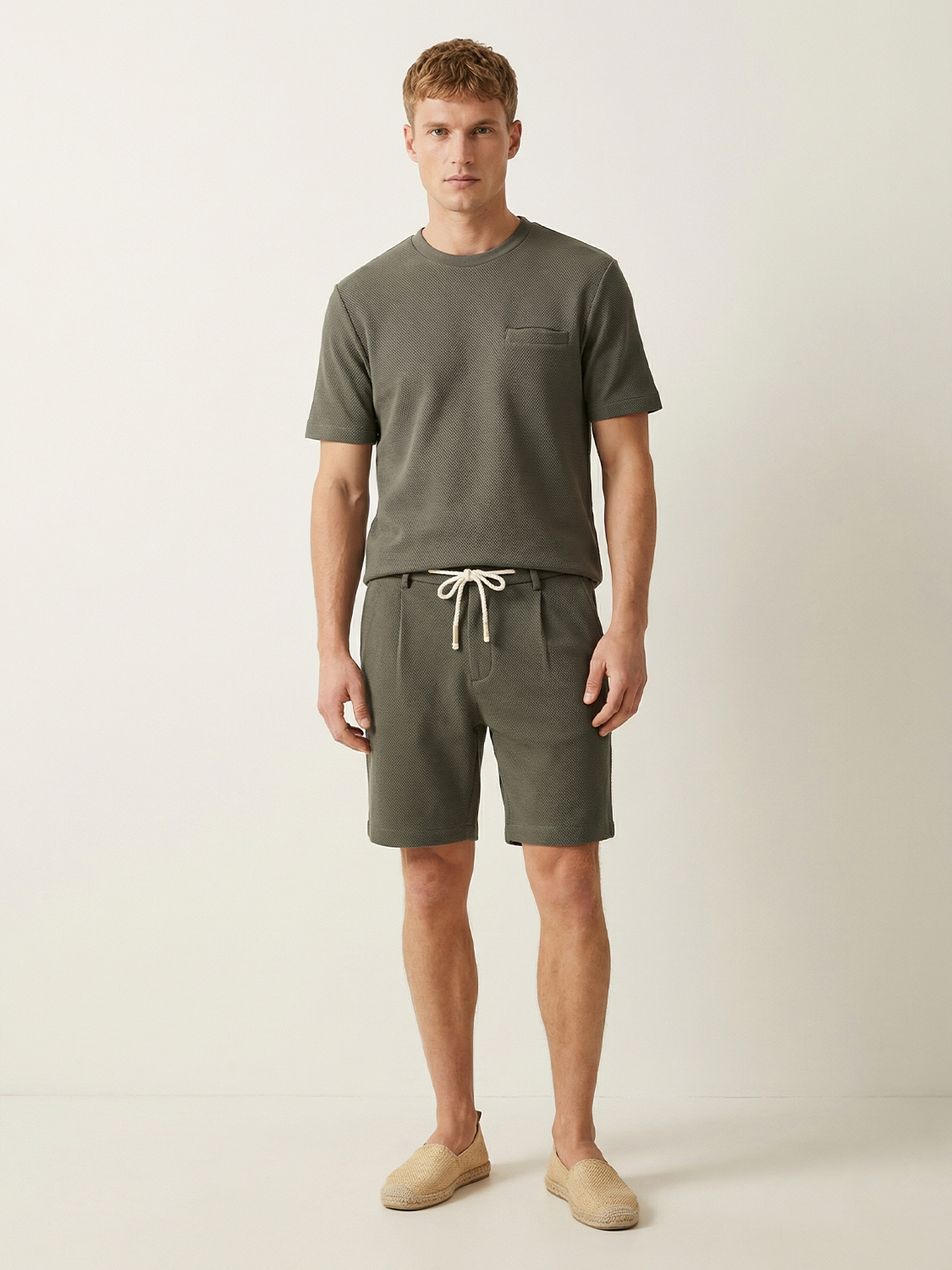 Haki Pamuk Dokulu Regular Fit Tişört