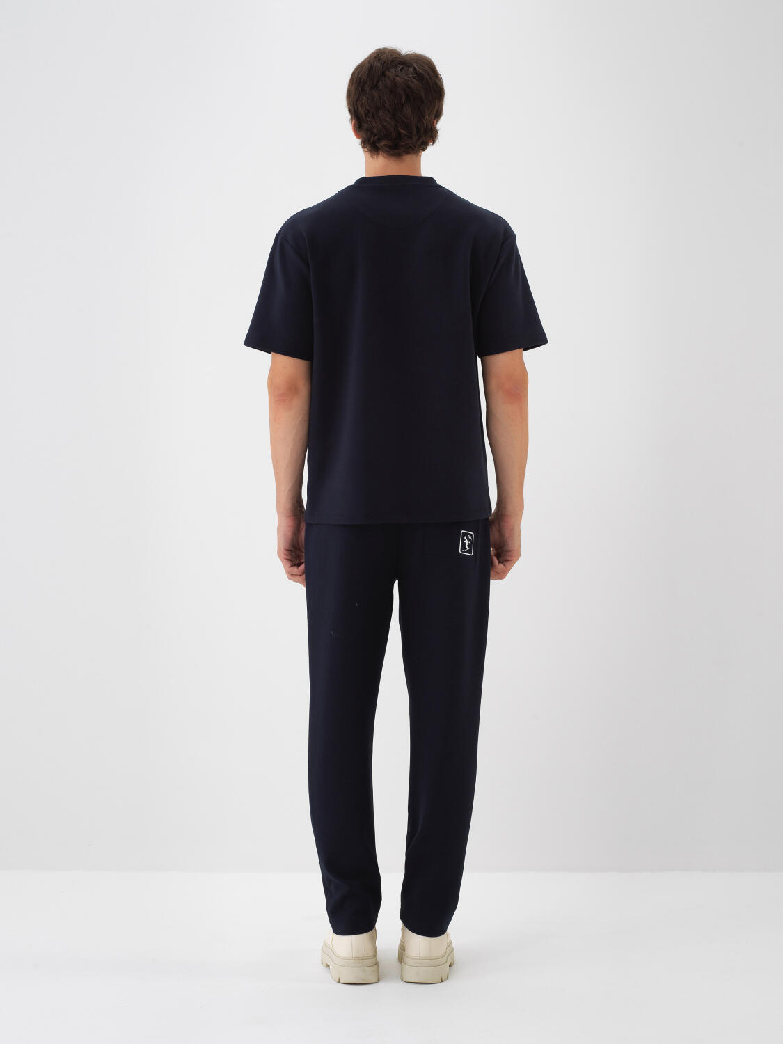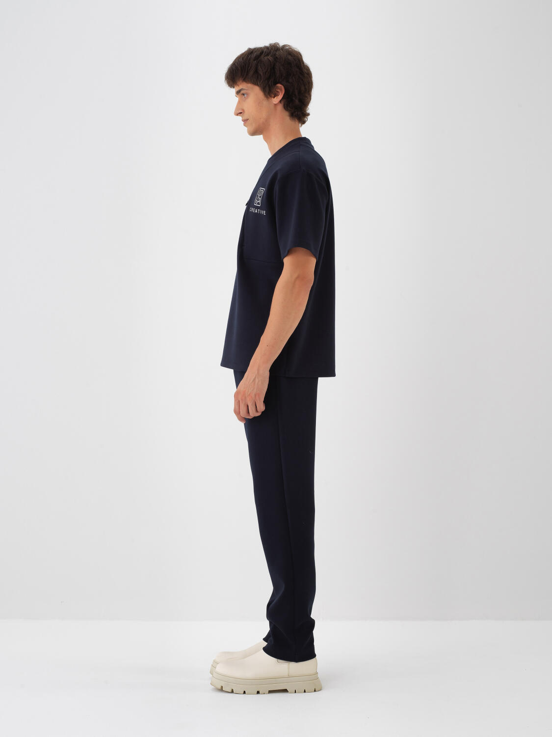 Lacivert Pamuk Dokulu Oversize Tişört