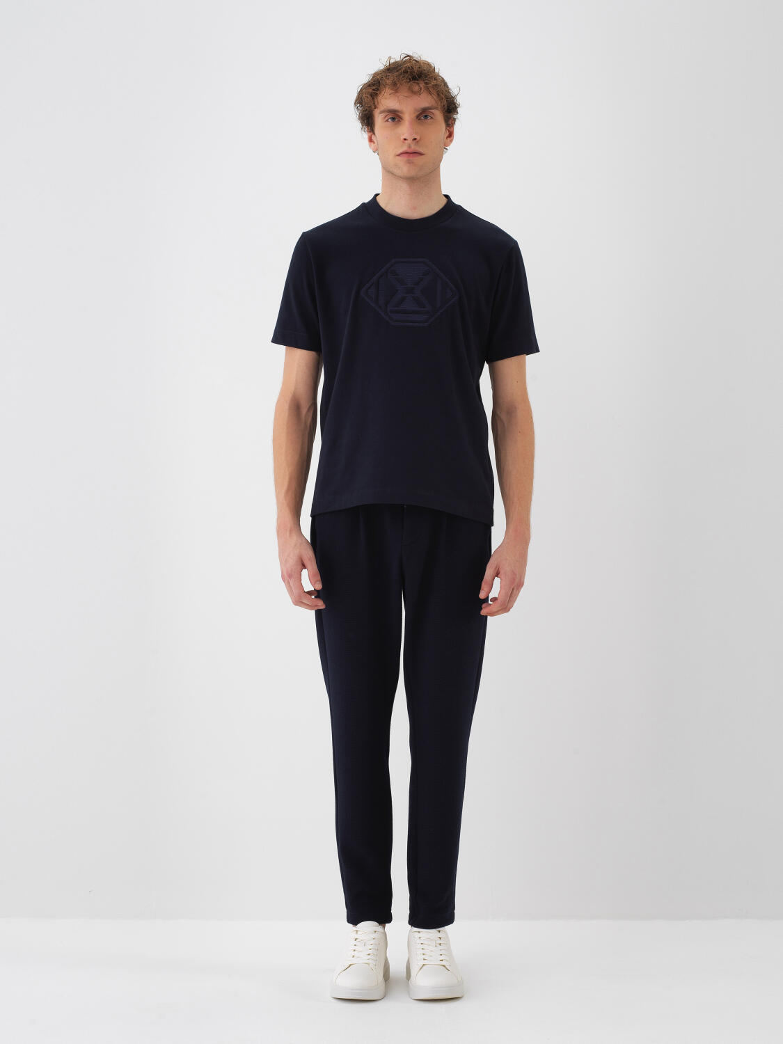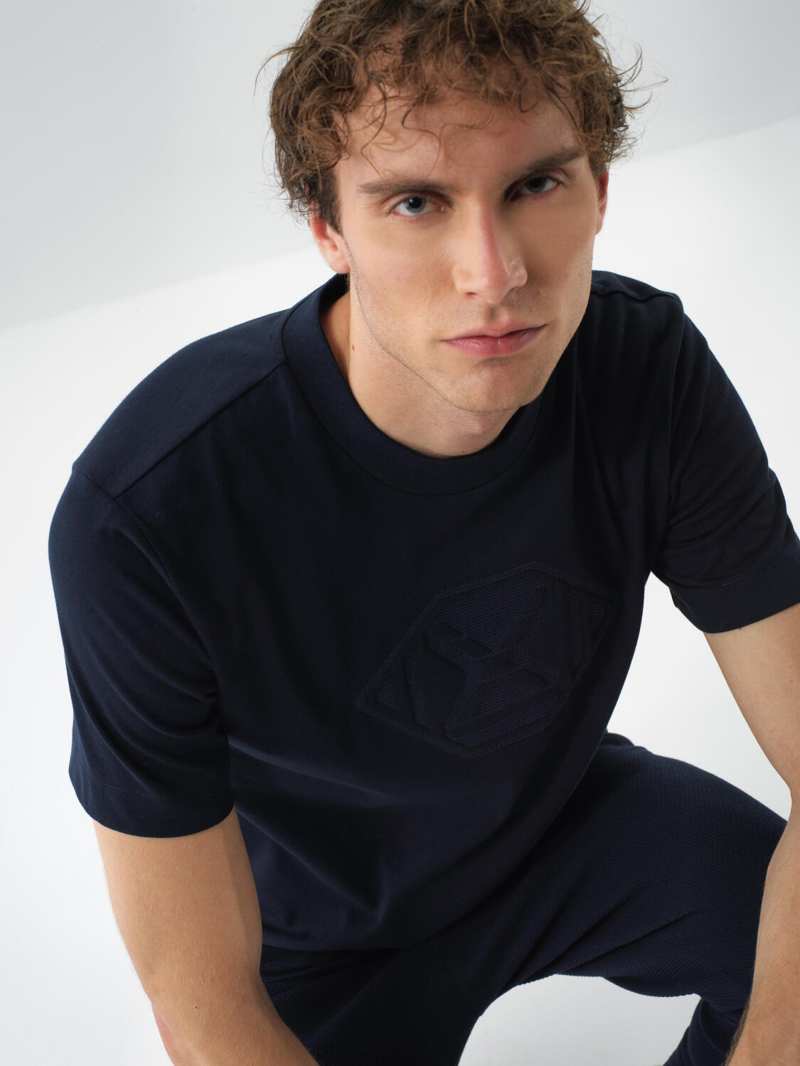 Lacivert Pamuk Dokulu Regular Fit Tişört - Xint