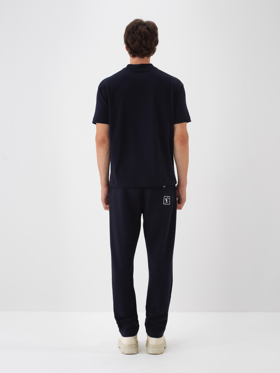 Lacivert Lüks Merserize Dokulu Regular Fit Tişört - Xint