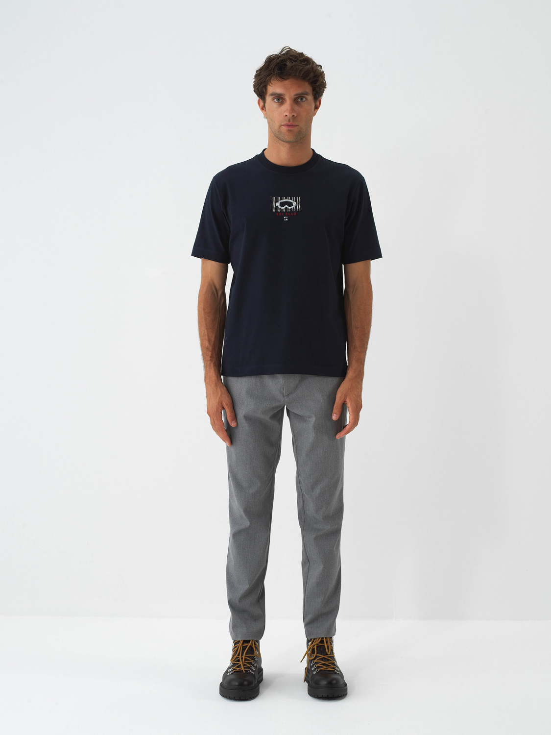 Lacivert Pamuk Dokulu Regular Fit Tişört - Xint