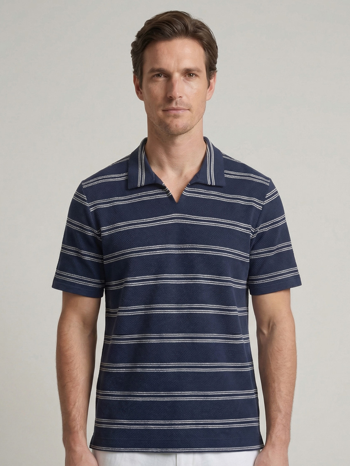 Lacivert Pamuk Dokulu Regular Fit Tişört