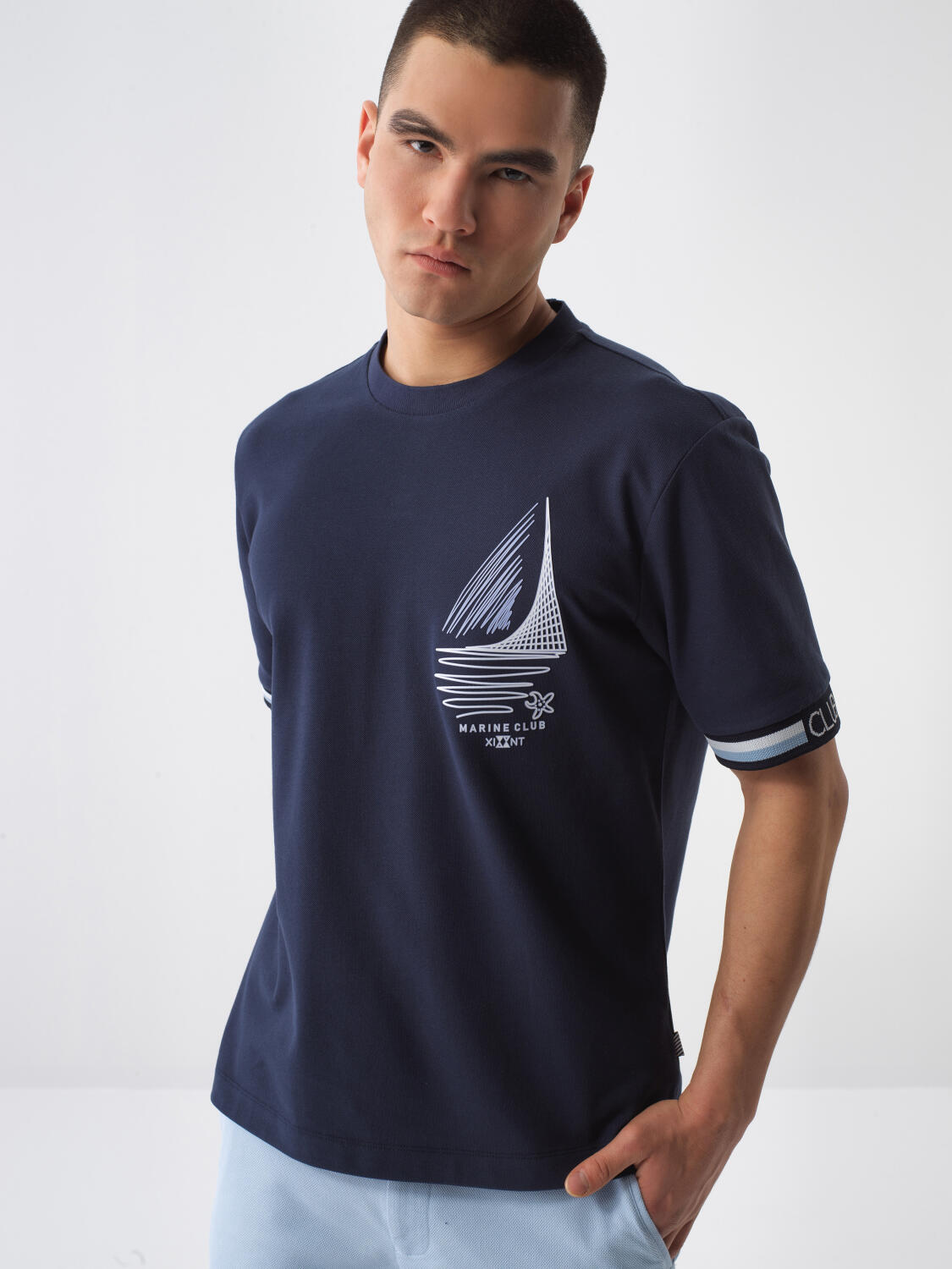 Lacivert Pamuk Dokulu Regular Fit Tişört