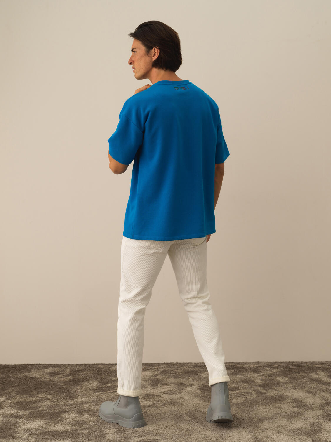 White Luxury Mercerized Textured Regular Fit T-Shirt - Xint