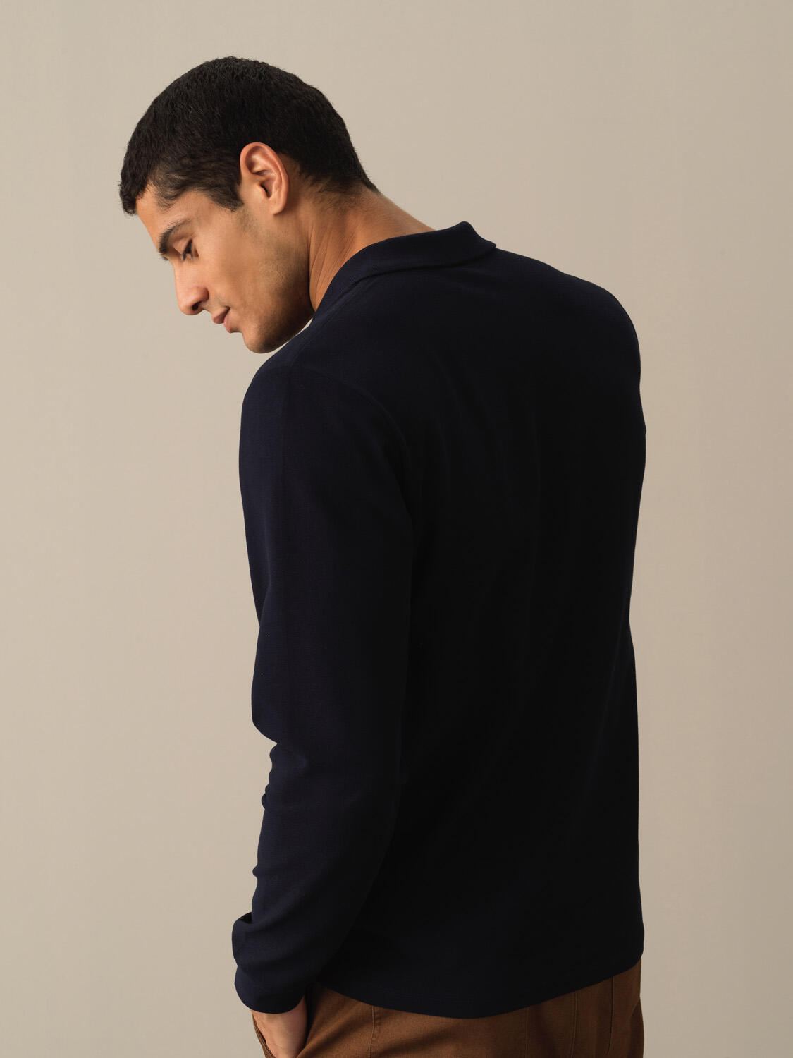 Navy Blue Cotton Textured Regular Fit Long Sleeve T-Shirt - Xint