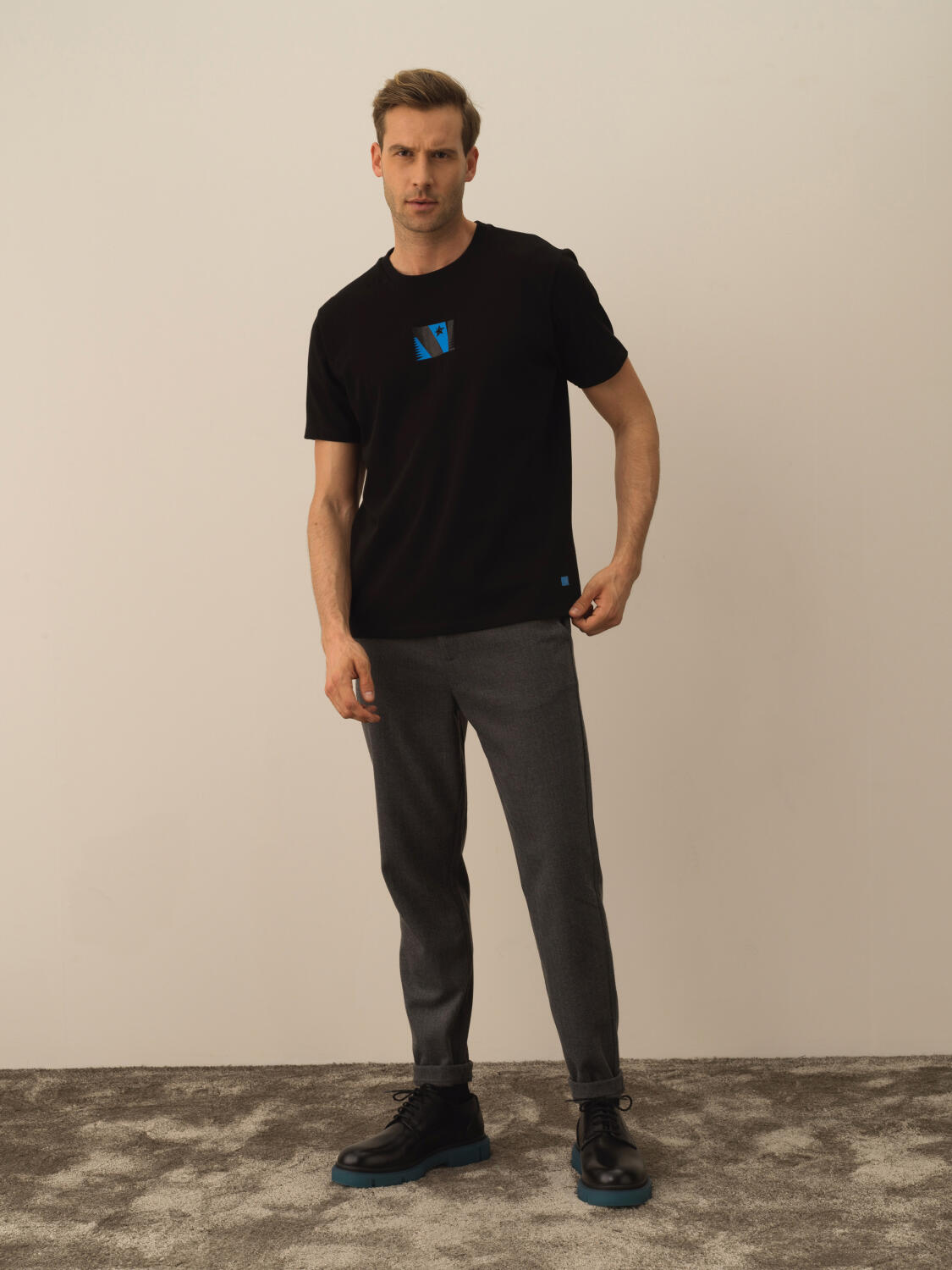 Siyah Lüks Merserize Dokulu Regular Fit Tişört - Xint